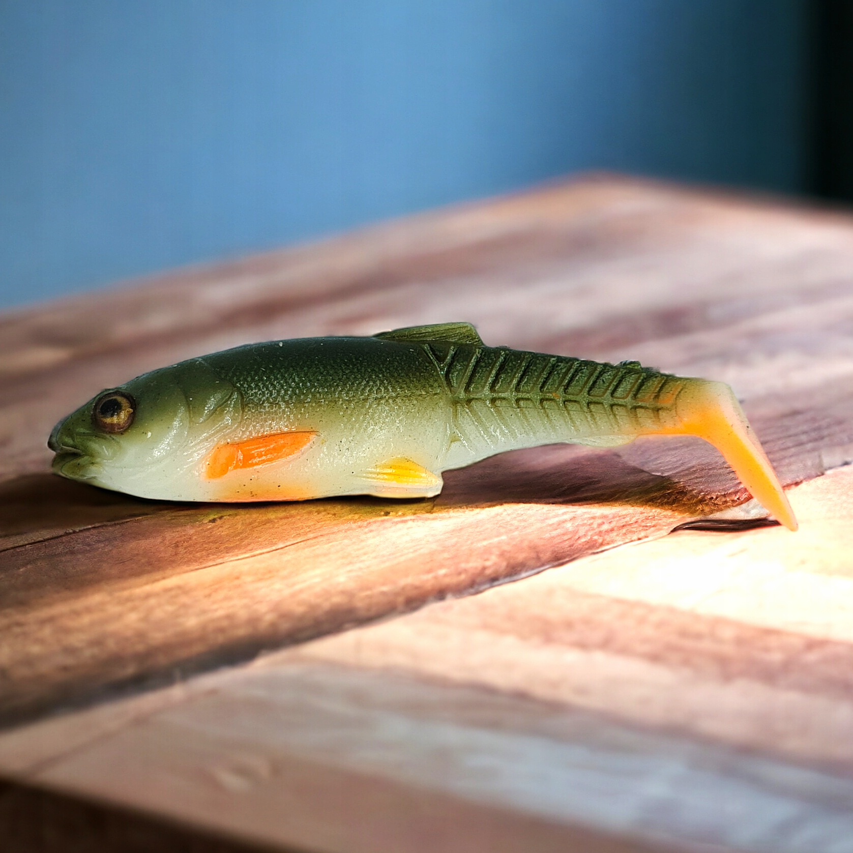 Предметом аукціону є набір гумок Savage Gear серії CRAFT CANNIBAL Paddletail з 8 штук довжиною 8,5 см. Приманку розробив і спроектував легендарний дизайнер Мадс Гроссель. Профіль приманки натхненний молодим смолтом лосося. Він має відкритий рот класичного канібала, реалістичні великі гумові очі та новий унікальний дизайн хвоста. Цей специфічний хвіст дозволяє гумі рухатися дуже реалістично навіть на дуже низькій швидкості.