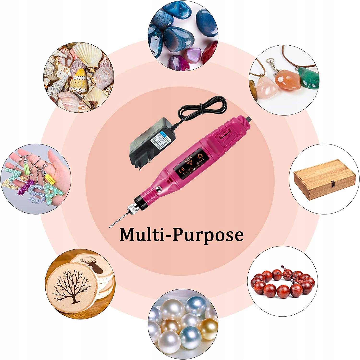 Виберіть і встановіть одне свердло з регулятором швидкості 2 в 1 і ручкою ввімкнення/вимкнення, ви можете регулювати безступінчасту швидкість від 3000 до 20 000 об/хв (обертів на хвилину) і свердлити отвори для смоляних форм b>, рукоділля та інші проекти DIY, які вимагають свердління точних отворів.