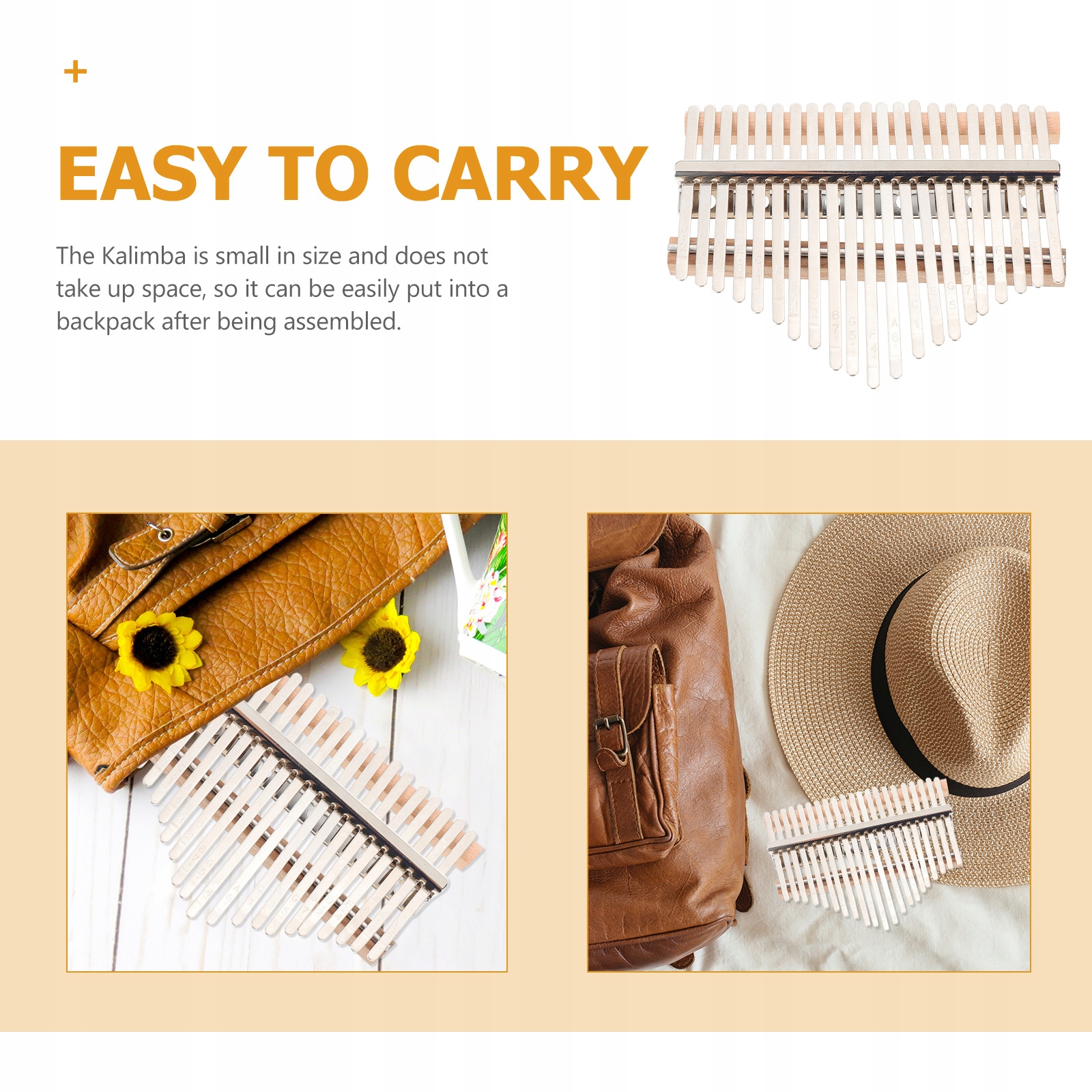 ✅kalimba невеликий і не займає місця, тому ви можете легко покласти його в рюкзак після складання.
