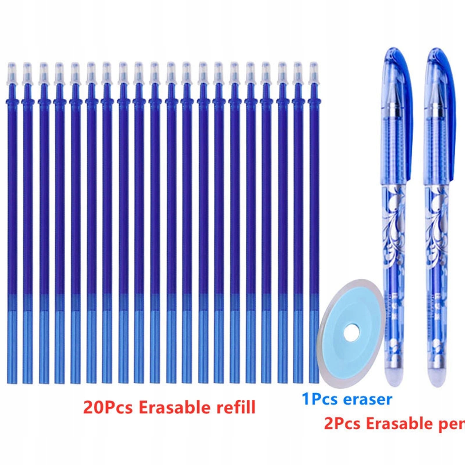 Набір ручок зі стиранням 0,5 мм. Ручка, що миється. Гладка та зручна 2 ручки, 1 гумка та 20 синіх насадок