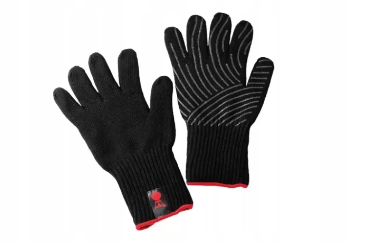 Рукавички виготовлені з кевлару, надзвичайно міцного та легкого матеріалу, який використовується у виробництві, серед іншого, бронежилетів, шоломів, високоефективного спортивного обладнання, а також як елементи броні авіаносця. Кевлар є одним із найміцніших штучних волокон, винайдених людиною, тому, купуючи рукавички Weber, ви гарантовано вдале та довгострокове інвестування. Внутрішня сторона рукавичок має протиковзкі вставки, які покращують захоплення та запобігають ковзанню гарячих підносів, решіток і посуду. Кевларові рукавички Weber виключають можливість опіків і високих температур, тому вони є одними з аксесуарів, які найчастіше купують користувачі гриля.