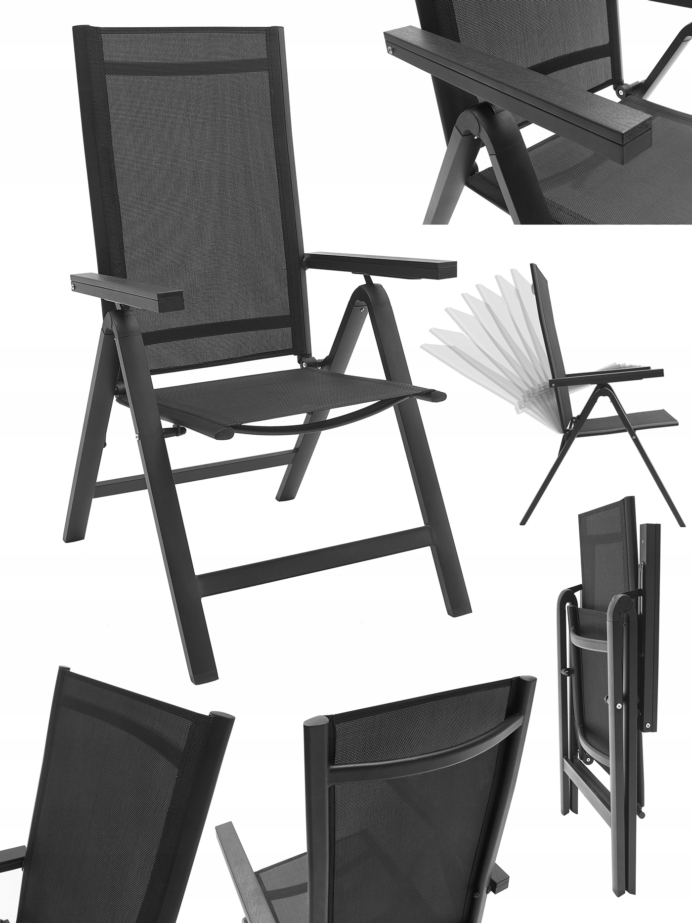 Набір садових меблів ідеально підходить для вашого саду. Рамка був подвійним розфарбованим порошком, який ідеально адаптує цей продукт, який можна використовувати всередині та зовні. Сидіння стільця та спинка були зроблені з чорної, гнучкої текстильної оббивки, щоб максимально підвищити комфорт. У ньому є дві бічні опори, виготовлені з композитної дошки WPC. Використовувані матеріали не потребують частого обслуговування, стійкі до погодних умов і не потребують особливого догляду. Ноги додатково оснащені пластиковими обкладинками. Стіл має чорний затверділий скляний верх з товщиною 5 мм.