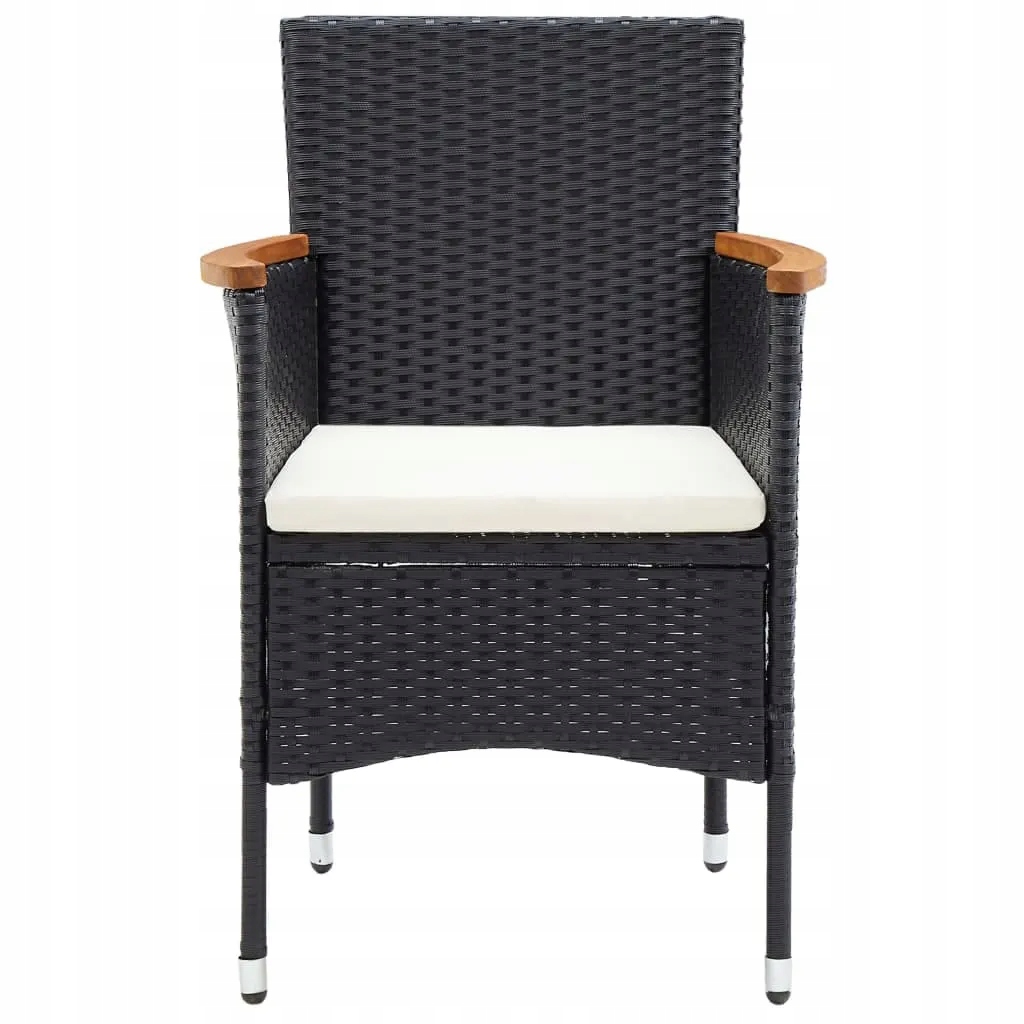 Набір садових меблів Rustic Charme - стіл 190x90x74 см, стілець 55x58x84 см, чорний поліетиленовий ротанг, кремові подушки