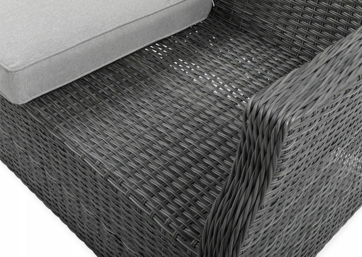 Три -особу диван з напівкруглою технологічною косою поєднує сучасний дизайн з винятковою функціональністю. Меблі характеризуються високою міцністю, легкою конструкцією та гнучкістю , що забезпечує комфорт та довговічність протягом багатьох років. Technorattan також надзвичайно легко доглядати за , що робить диван ідеальним як для саду, на терасі, так і у вітальні.
