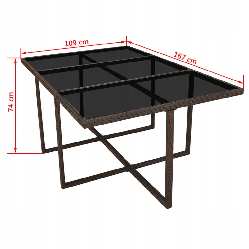 Набір садових меблів з ротанга елегантної форми ідеально підійде для обіду на відкритому повітрі. або відпочити в саду. Виготовлені з атмосферостійкого та водостійкого поліетиленового ротанга гарантують, що меблі будуть легкими для чищення, міцними та ідеальними для щоденного використання. Сталеві рами з порошковим покриттям роблять стіл і стільці міцними та міцними. Легка конструкція дозволяє легко переносити. Скляну поверхню легко чистити вологою ганчіркою.