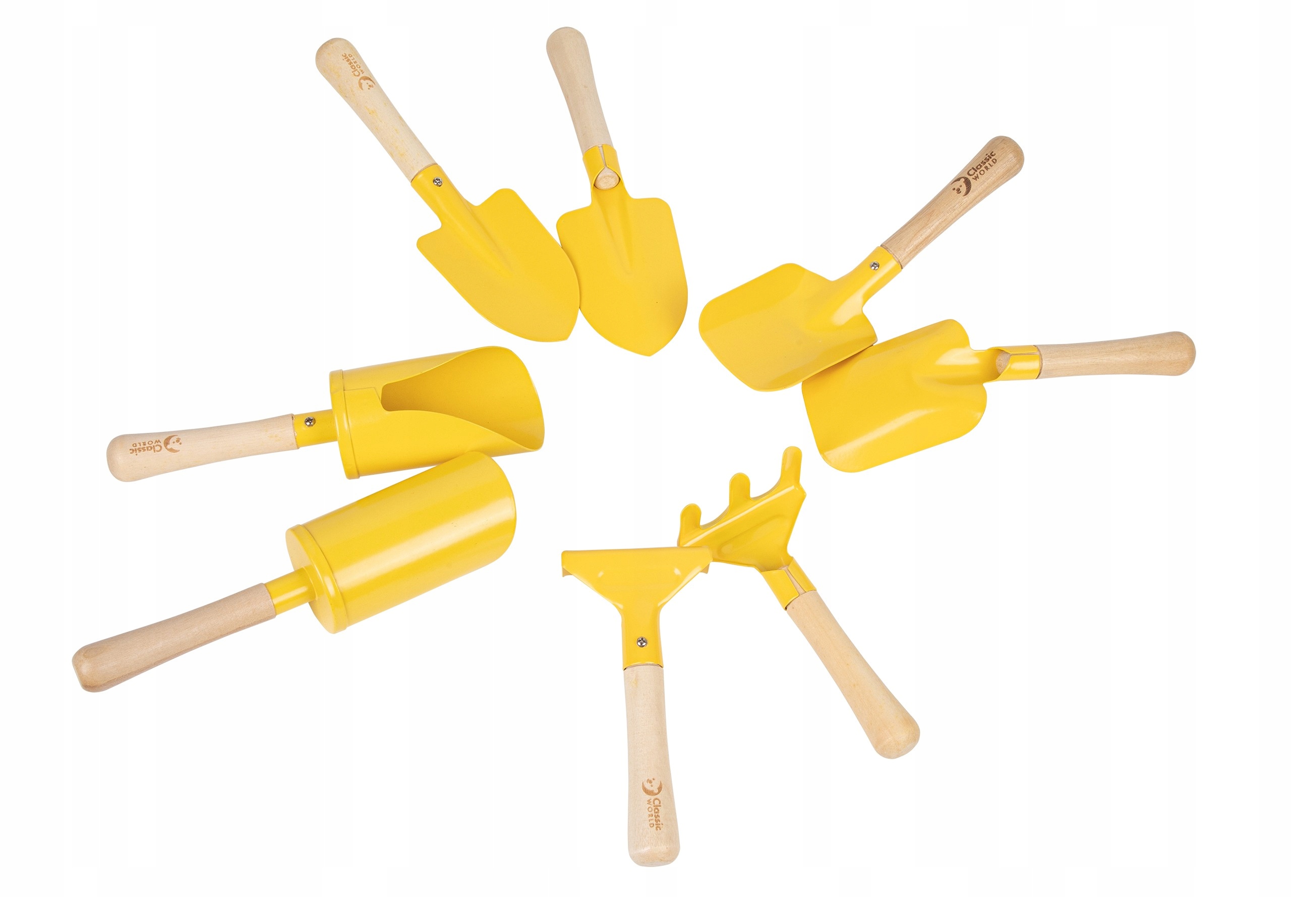 - ✔️ The set contains 8 gardening tools: different types of blades, grabki, drawers and other accessories durable metal in an intense yellow color and wooden handles