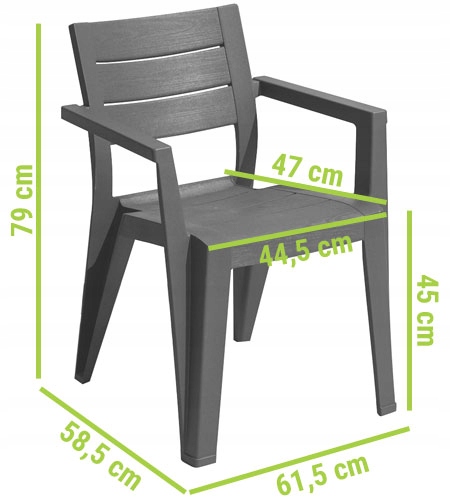 Садові стільці Julie мають ергономічну форму та профільовані спинки, що забезпечує високий комфорт під час сидіння.
