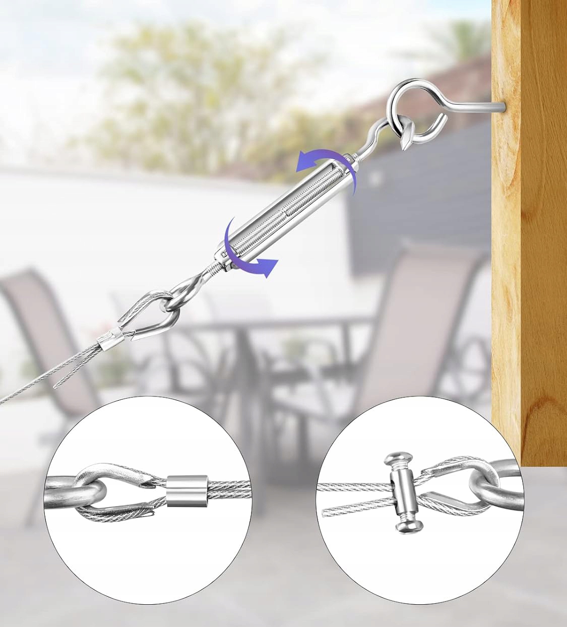 ► 【Легка установка】 Ви можете вільно вирізати потрібну довжину різаком для дроту; Алюмінієва затискача. Ми рекомендуємо інструмент для затягування, кабель дроту захищає від зносу. Кожна частина підключена ниткою, яку дуже просто встановити та розібрати, гвинт видаляється, тому його можна використовувати багато разів.