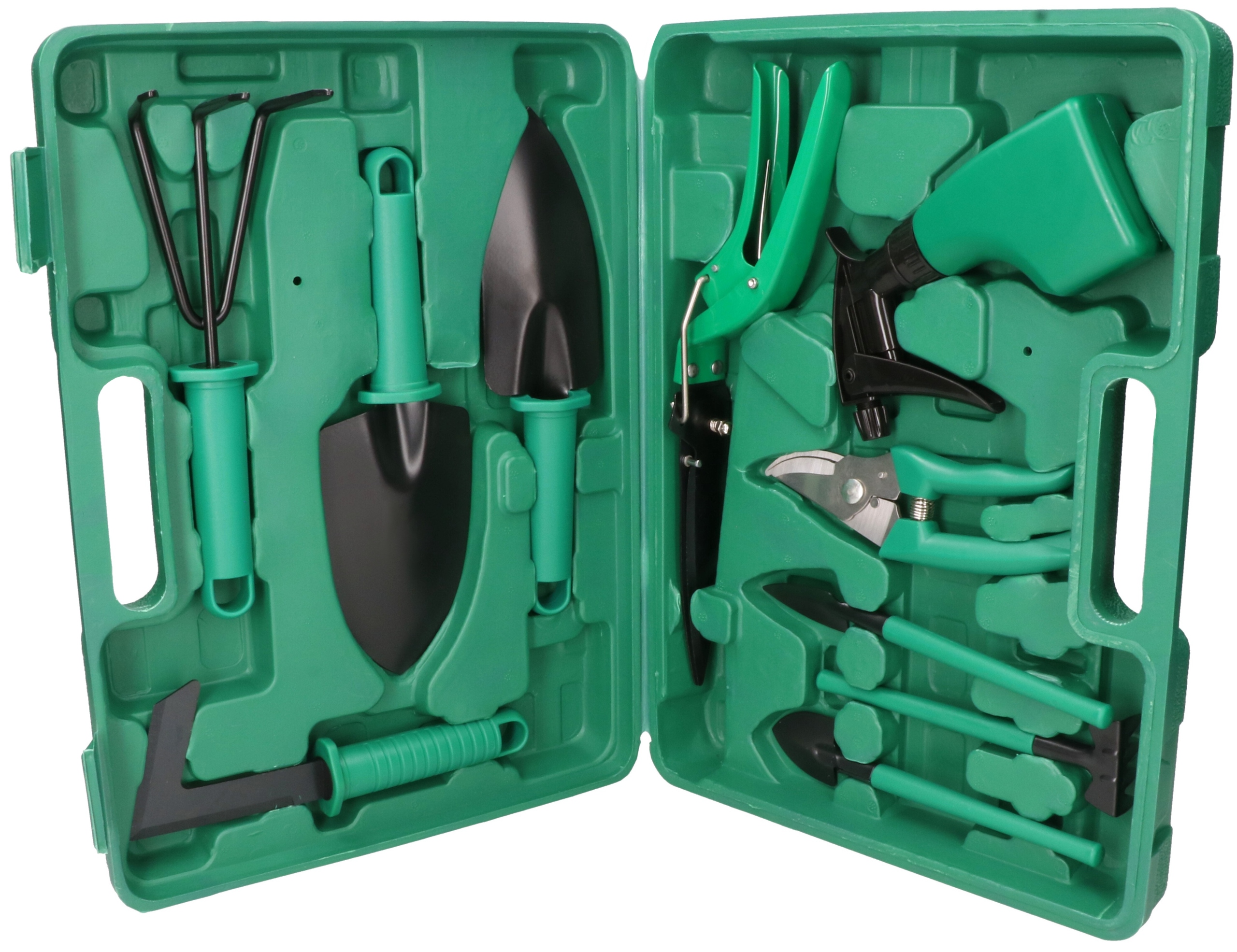 Ви ведете сад або вирощуєте рослини на балконі? Вам обов'язково потрібні засоби, які допоможуть приборкати буйну рослинність і підтримувати кущі і дерева в хорошому стані. Набір інструментів у валізі містить усі необхідні аксесуари, які знадобляться на ділянці, в саду чи на грядці.