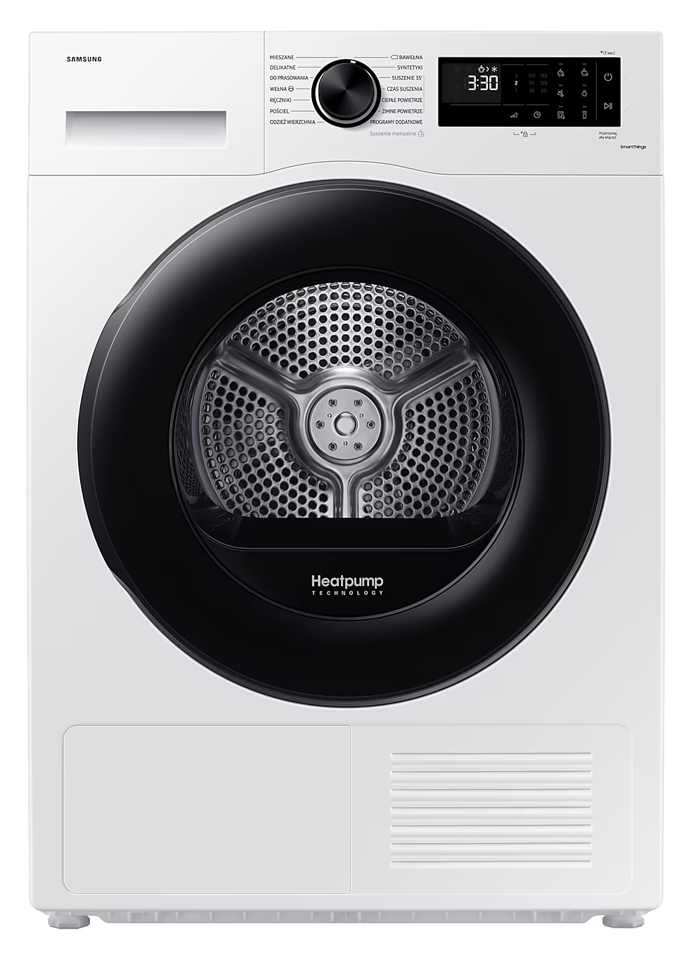 Optimal Dry - розумне налаштування параметрів сушіння. Інноваційний фільтр 2 в 1 - проста експлуатація та обслуговування. 35' Програма сушіння - швидке та зручне сушіння завантажень до 1 кг. SmartThings Energy - відстежуйте та керуйте енергоспоживанням своїх пристроїв для економії. Додаток SmartThings. Запустіть програму сушіння з будь-якого місця за допомогою телефону. Естетичне підсвічування барабана - перевірте стан прання. Цифровий інверторний двигун.