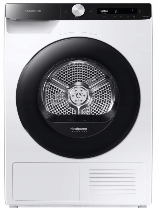 Конденсаційна сушильна машина Samsung DV80T5220AE з тепловим насосом, номінальна ємність 8 кг, глибина 60 см, клас енергоспоживання A+++. Він споживає 176 кВт/год енергії на рік. Технологія OptimalDry. SmartThings. модуль WiFi.