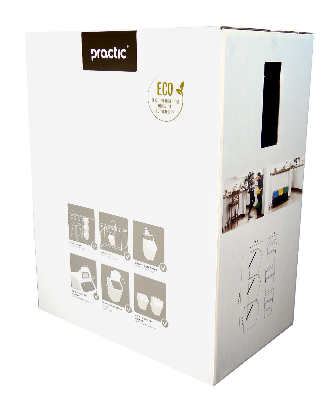 Завдяки кришці на нахилі ви можете встановити кілька контейнерів (максимум три) один зверху.