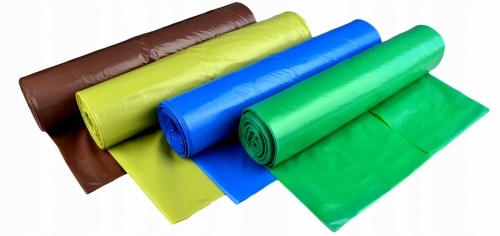 Ми також продаємо кольорові мішки для сортування сміття (червоні, коричневі, зелений, жовтий і синій) різної ємності з принтом і без та набори пакетів для збору сміття - 3 кольори (з, n) і 4 кольори (b, z, ż, n).