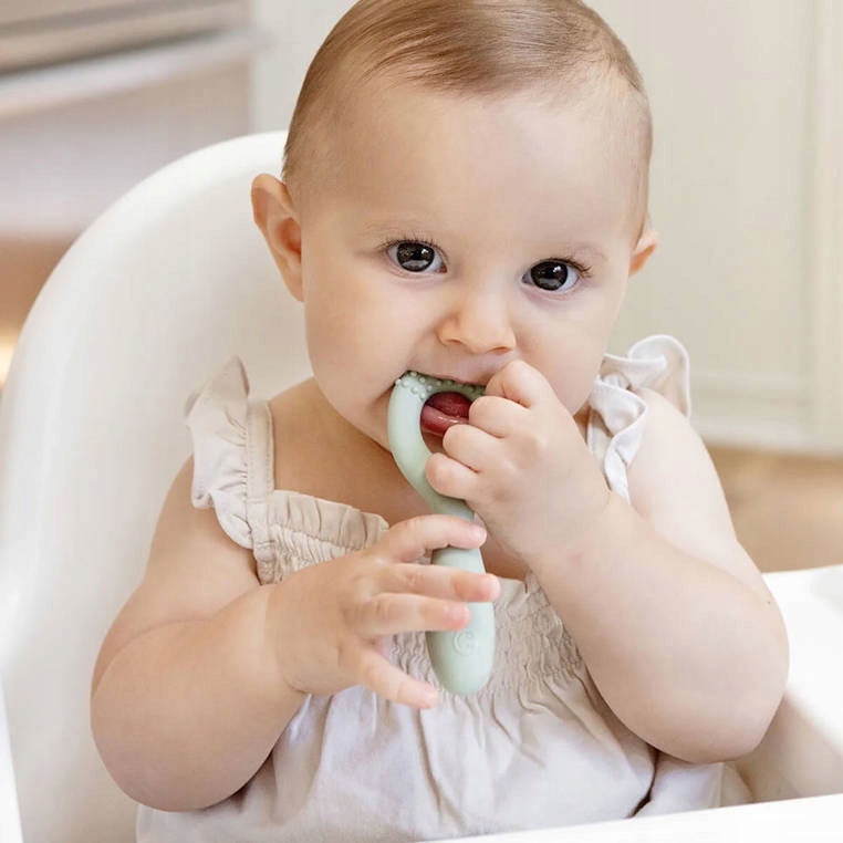 Прорізувач Tiny нагадує ложку: він має сенсорні виступи на голівці. які стимулюють закривання рота (це допомагає, серед іншого, зменшити слинотечу), а отвір посередині тренує язик підніматися, що покращує здатність ковтати. Рух підйому язика також є вступом до артикуляції звуків n, t і d.