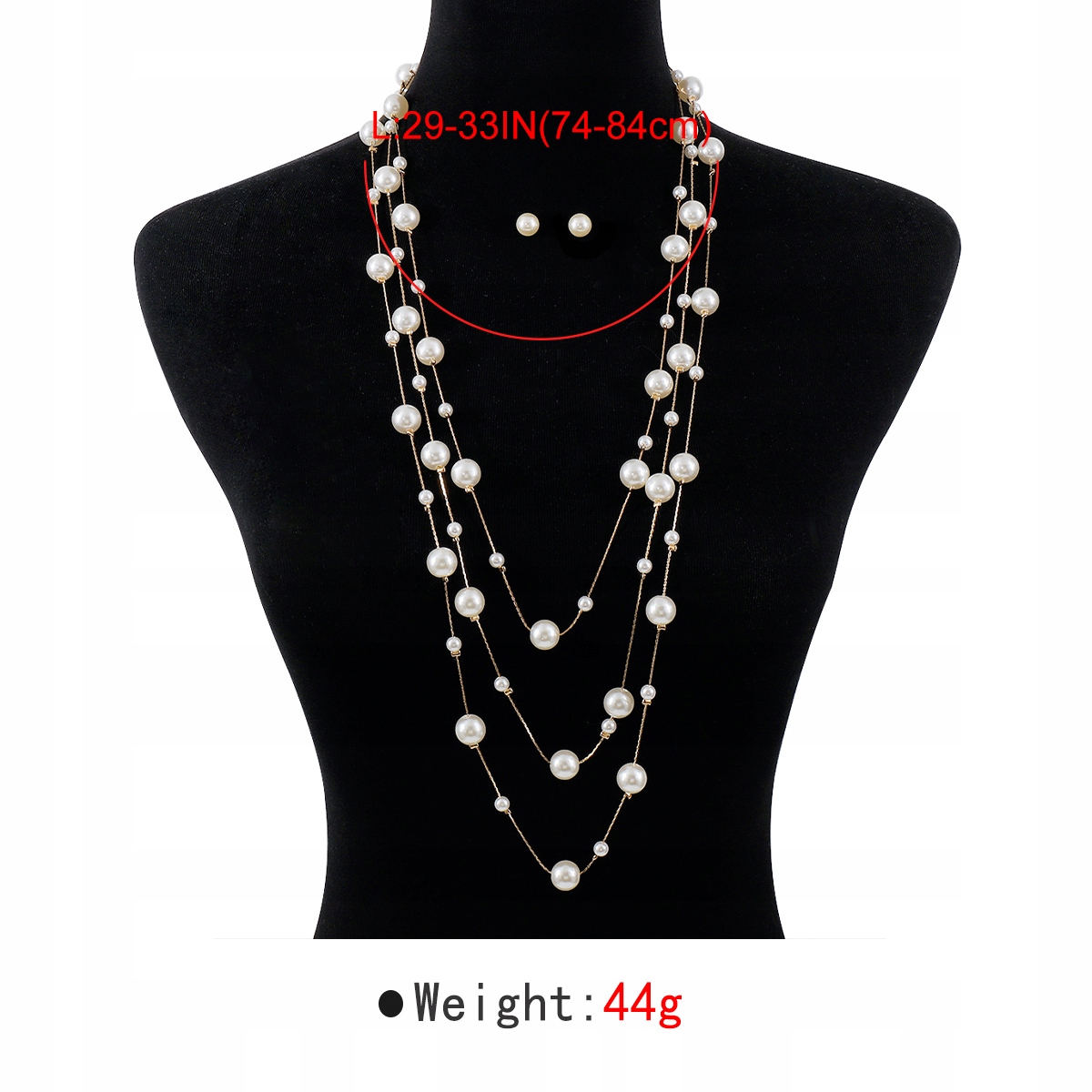 Набір сережок, намисто, біле золото, перли, намиста, багатошарові довгі ретро