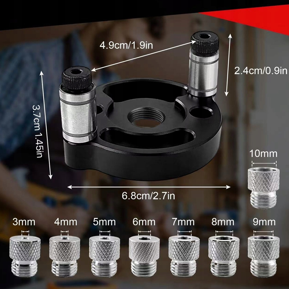 ➡wysoka якість : локатор бурових отворів для обробки деревини, виготовленого з алюмінієвого сплаву з відмінним окисленням поверхні, характеризується високою твердістю, стійкістю до зносу, захистом від іржі, міцністю та хорошою міцністю. Свердіння для деревообробки містить свердління в 8 різних розмірах (3 мм/4 мм/5 мм/6 мм/7 мм/8 мм/9 мм/10 мм), щоб відповідати різним вимогам для отворів. Знайдіть середнє положення, свердління є точним та ефективним, індикатор вертикального свердління полегшує пошук краю дошки щоразу на дошці. Простий у зберіганні та швидке використання.