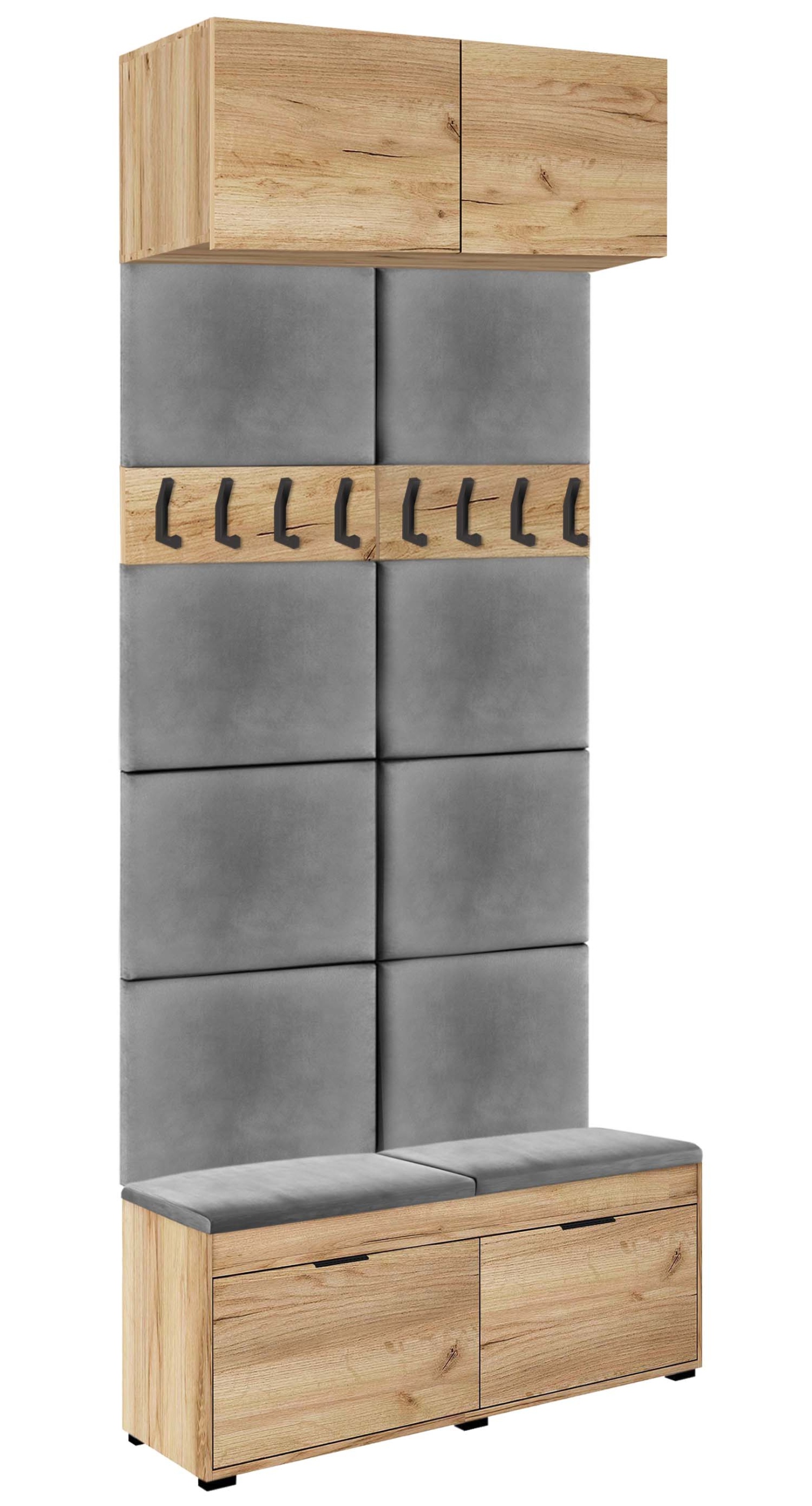 Модульні м'які панелі зроблять ваш інтер'єр надзвичайно затишним. Ви можете встановити їх, наприклад, у передпокої, створивши гарний куточок у вашому домі. Панелі, які ми пропонуємо, мають розмір50x37x5 см і мають той самий розмір і колір, що й сидіння, які використовуються в шафці для взуття Wave 3. Панелі виготовлені з ламінованої дошки, оббивка з поролону товщиною 3 см і високоякісні тканинив кількох модних відтінках. Загальна товщина панелі 5 см.