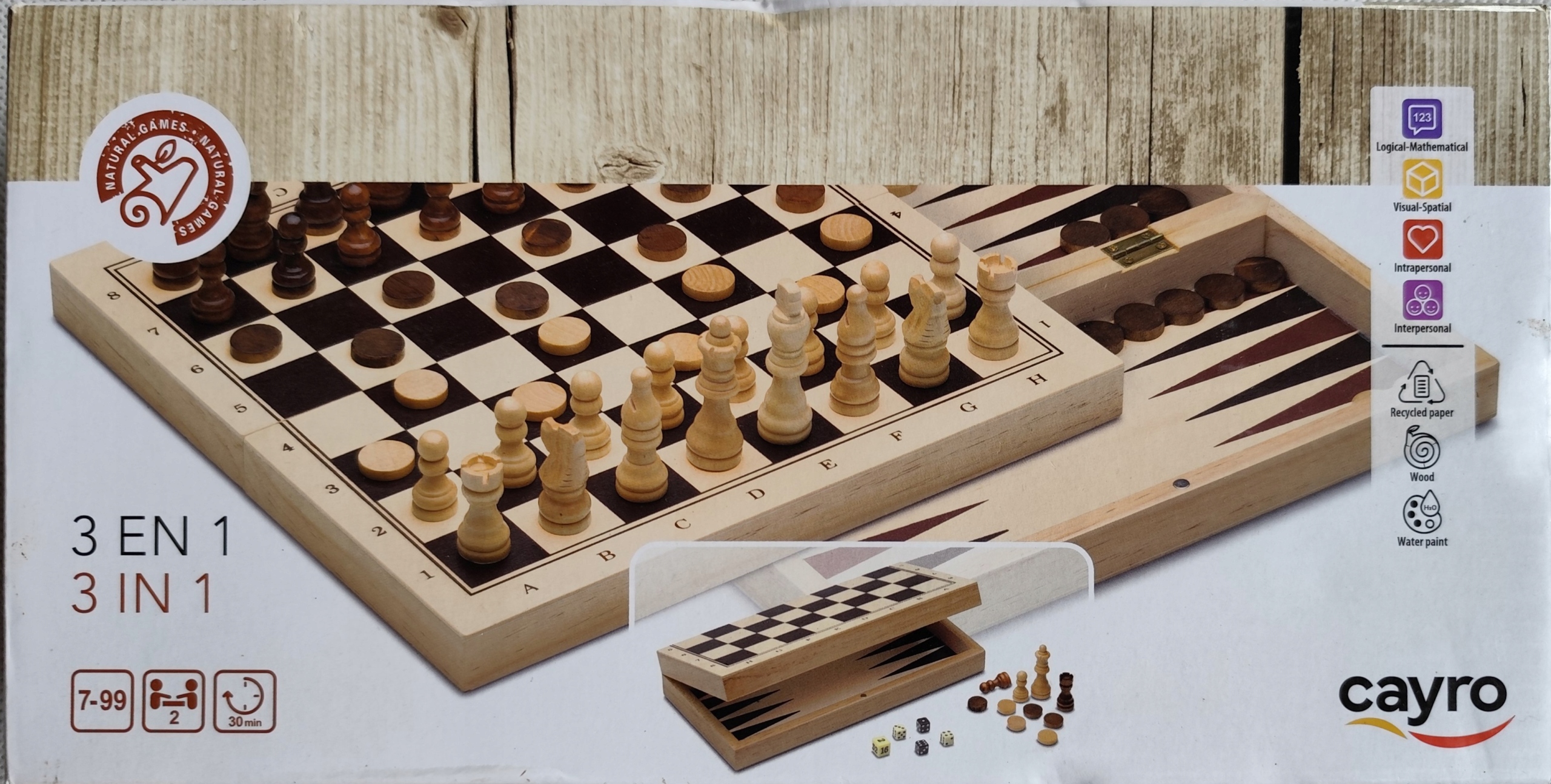 Набір шахів Cayro 3 в 1. Дерев'яні нарди. Шашки