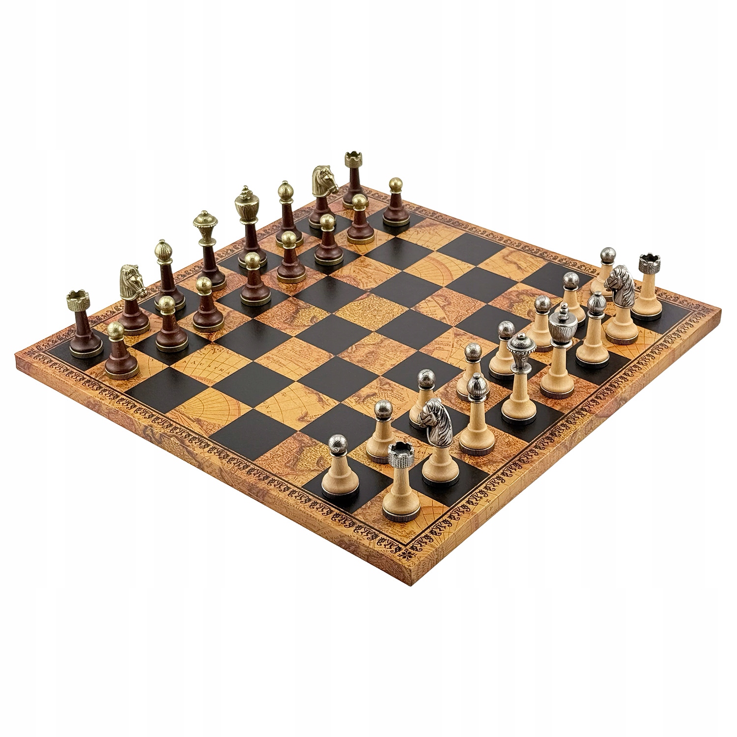 ШАХОВИЙ НАБІР ITALFAMA: Фігурки STAUNTON, метал/дерево + дошка з екошкіри 40 см