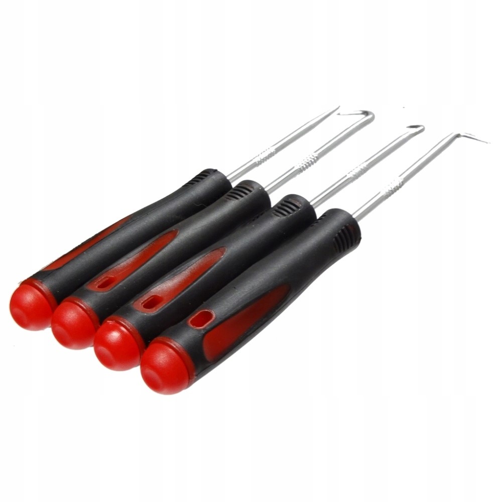 Предметом пропозиції є набір з 4 гострих шампурів. Інструменти, призначені для демонтажу ущільнювальних кілець, сальників і всіх типів ущільнювачів, виготовлені з нековзкого пластику, що забезпечує міцний хват і комфорт під час роботи.