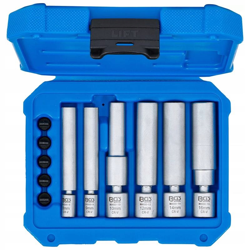 Набір шарнірних головок для свічок розжарювання та свічок запалювання 6,3 мм (1/4") / 10 мм (3/8") 8 - 9 - 10 - 12 - 14 - 16 мм 11 шт., BGS 80000