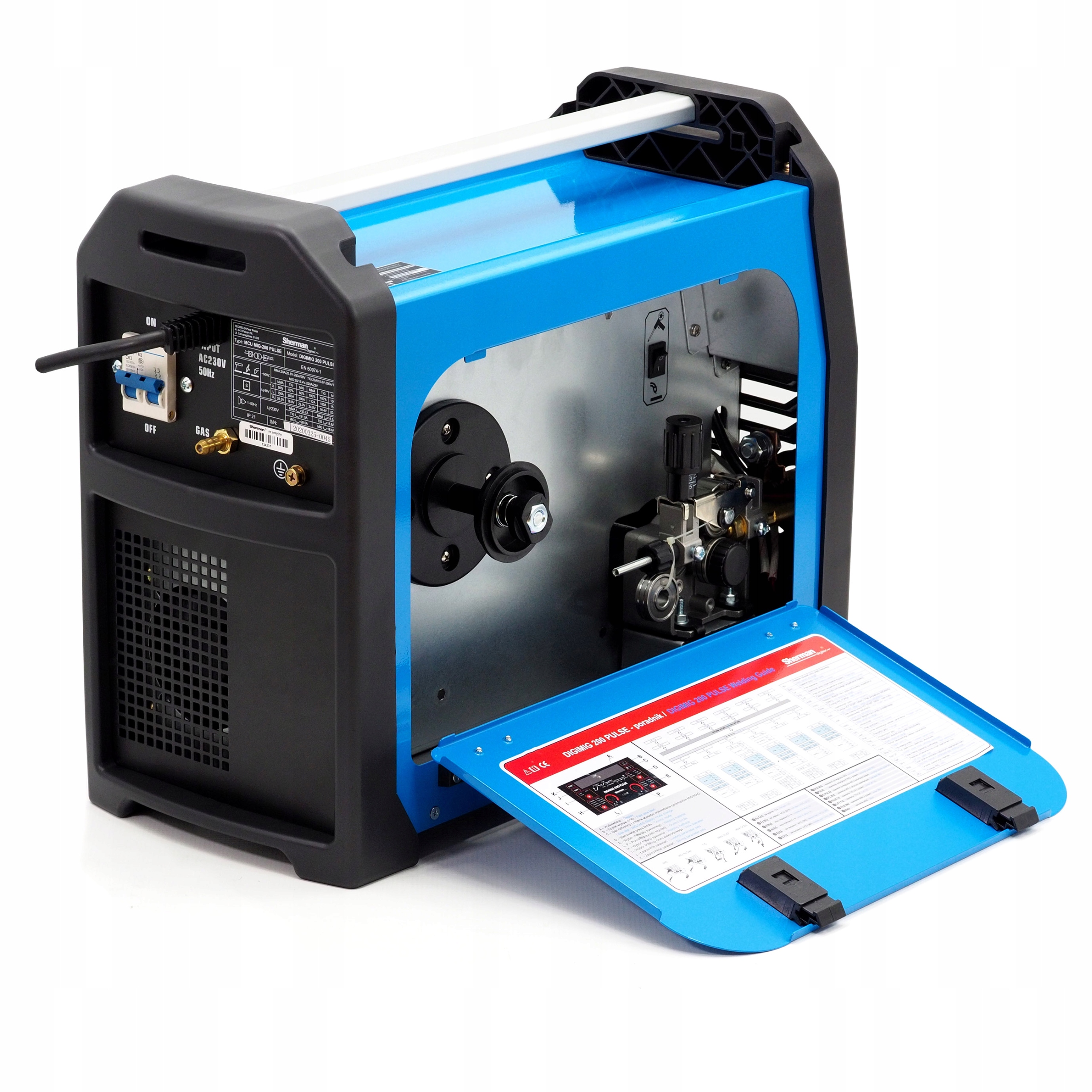 Завдяки чіткій передній панелі ми можемо налаштувати всі параметри. Безліч синергетичних програм для зварювання різних матеріалів, робочий цикл 60% і максимальний струм 200А роблять цей апарат надзвичайно ефективним і універсальним. Використання імпульсу дозволяє з’єднувати дуже тонкі елементи, менше 1 мм без ризику обпектися.