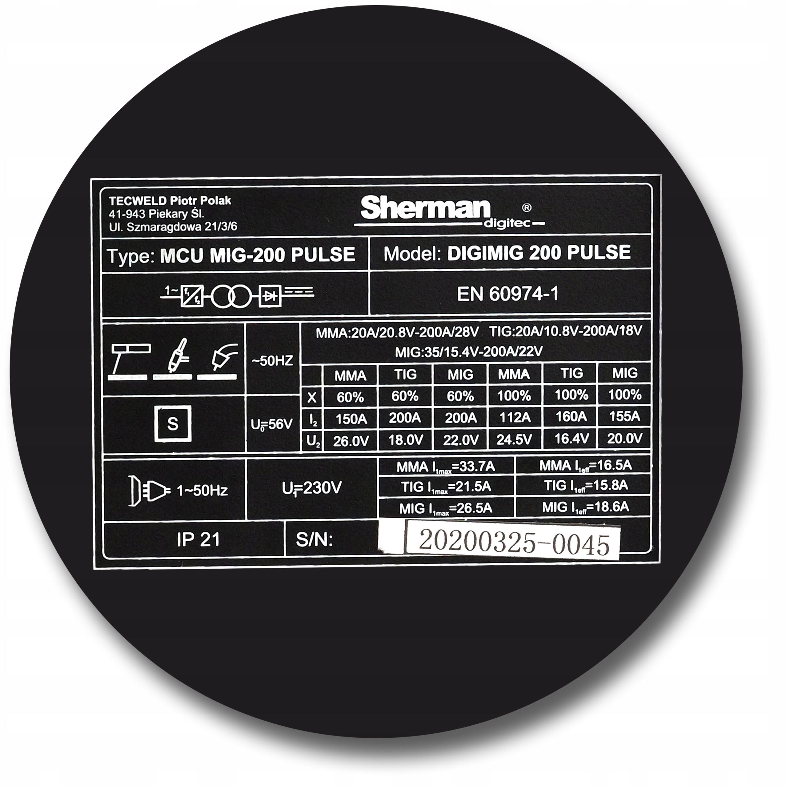 Синергетичний зварювальний апарат SHERMAN DIGIMIG 200 Pulse - це інноваційний апарат для зварювання сталі та кольорових металів методами MIG/MAG, MMA (електрод з покриттям) і TIG Lift (ручка в комплекті)