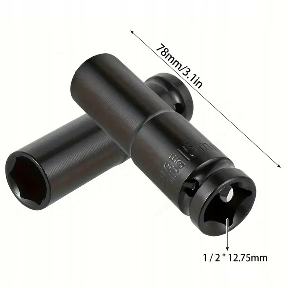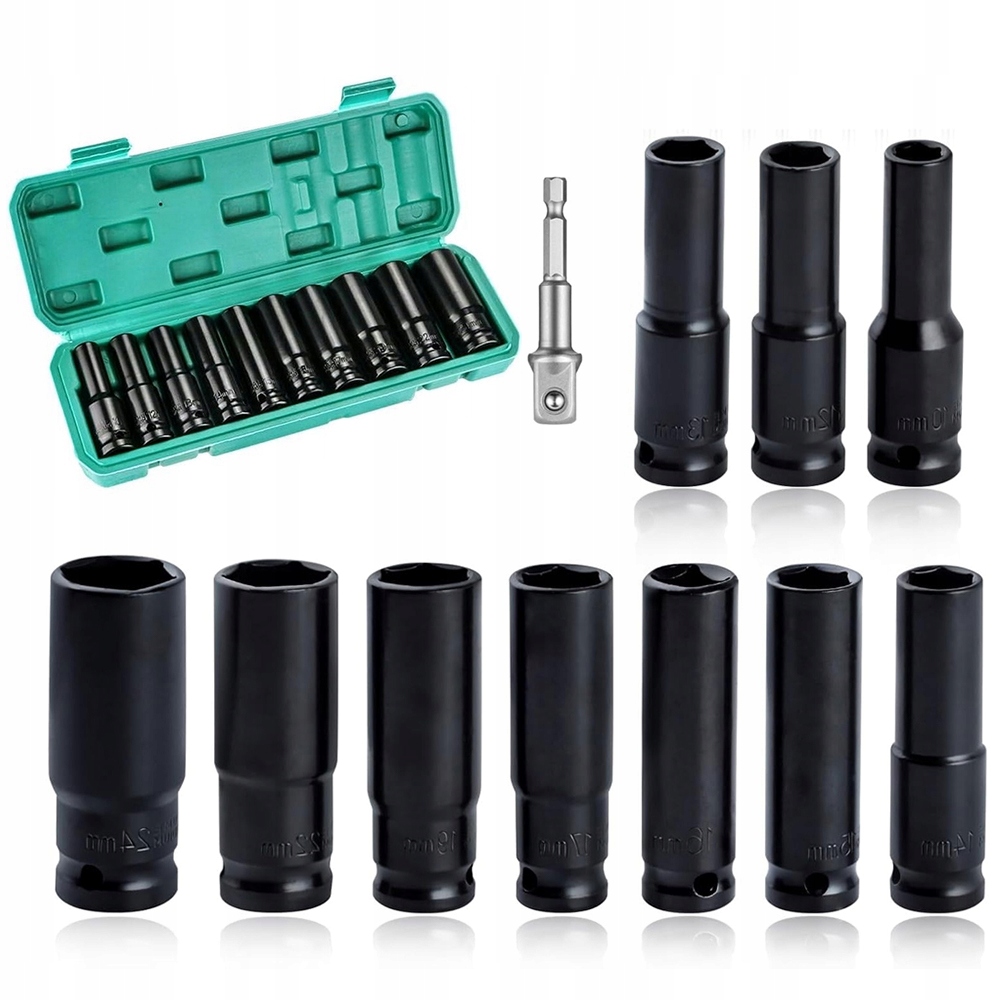 🔩- У набір входить загалом 10 штук метричних ударних головок глибиною 1/2 дюйма (10-12-13-14-15-16-17-19-22-24 мм), а глибина головки ударного ключа становить 78 мм, що дозволяє задовольняти будь-які потреби та використання сценаріїв.