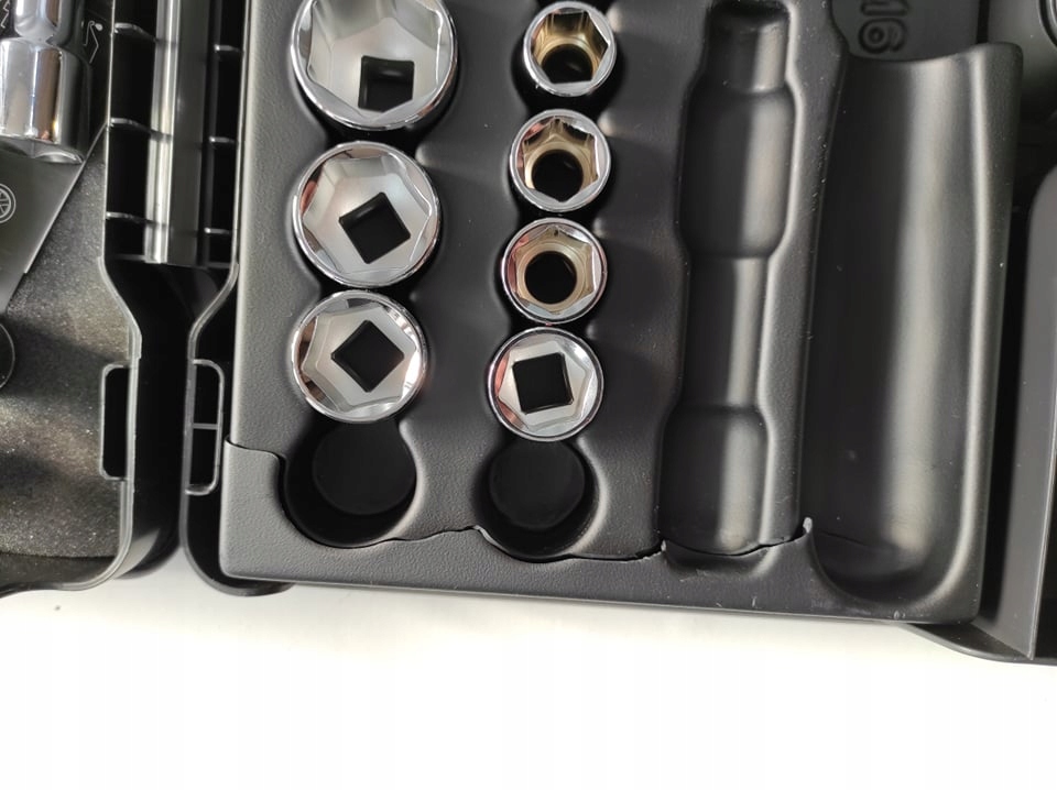 - 55 частин із 2 ручки (1/2 та 1/4 дюйма), різноманітні головки, насадки, подовжувачі та багато іншого.