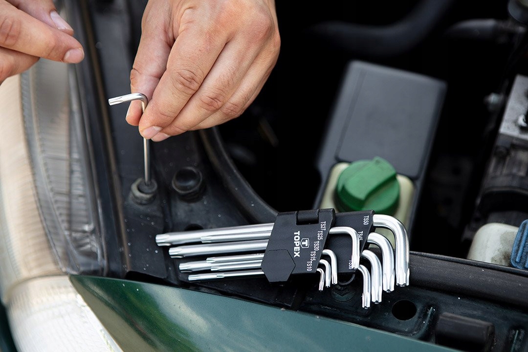 Набір TOPEX 35D951 — це універсальний набір ключів TORX, призначених для роботи з гвинтами з отвором (захисні TORX). Завдяки довгій конструкції забезпечує зручний доступ до елементів у глибших гніздах. Отвір на кінцях дозволяє використовувати гвинти, закріплені шпилькою, які часто зустрічаються в електроніці, побутовій техніці, автомобілях і меблях.