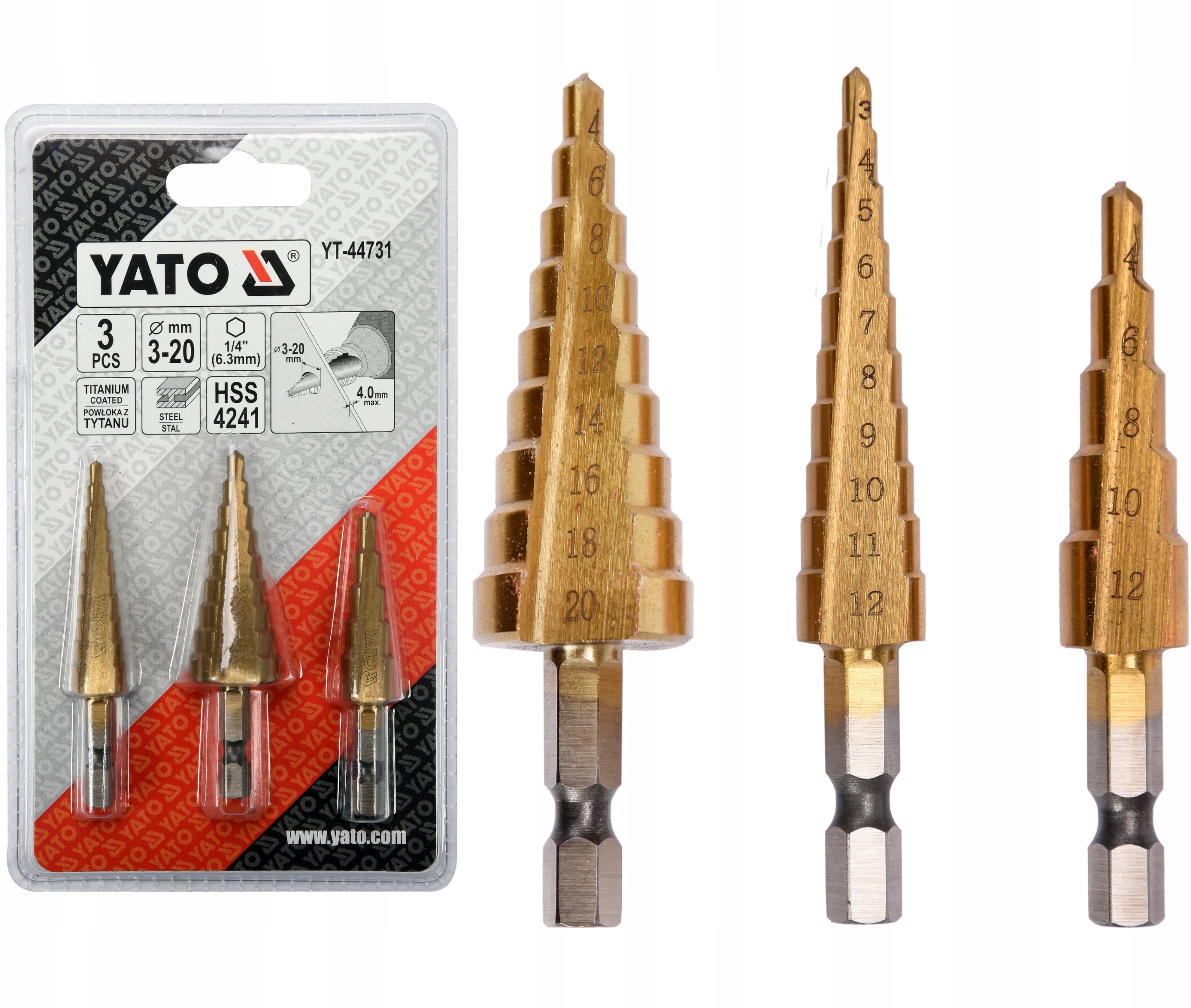 НАБІР ШЕСТИГРАННИХ СТУПІНЧИВИХ СУВДРІЛ 3 ЧАСТИНИ YT-44731