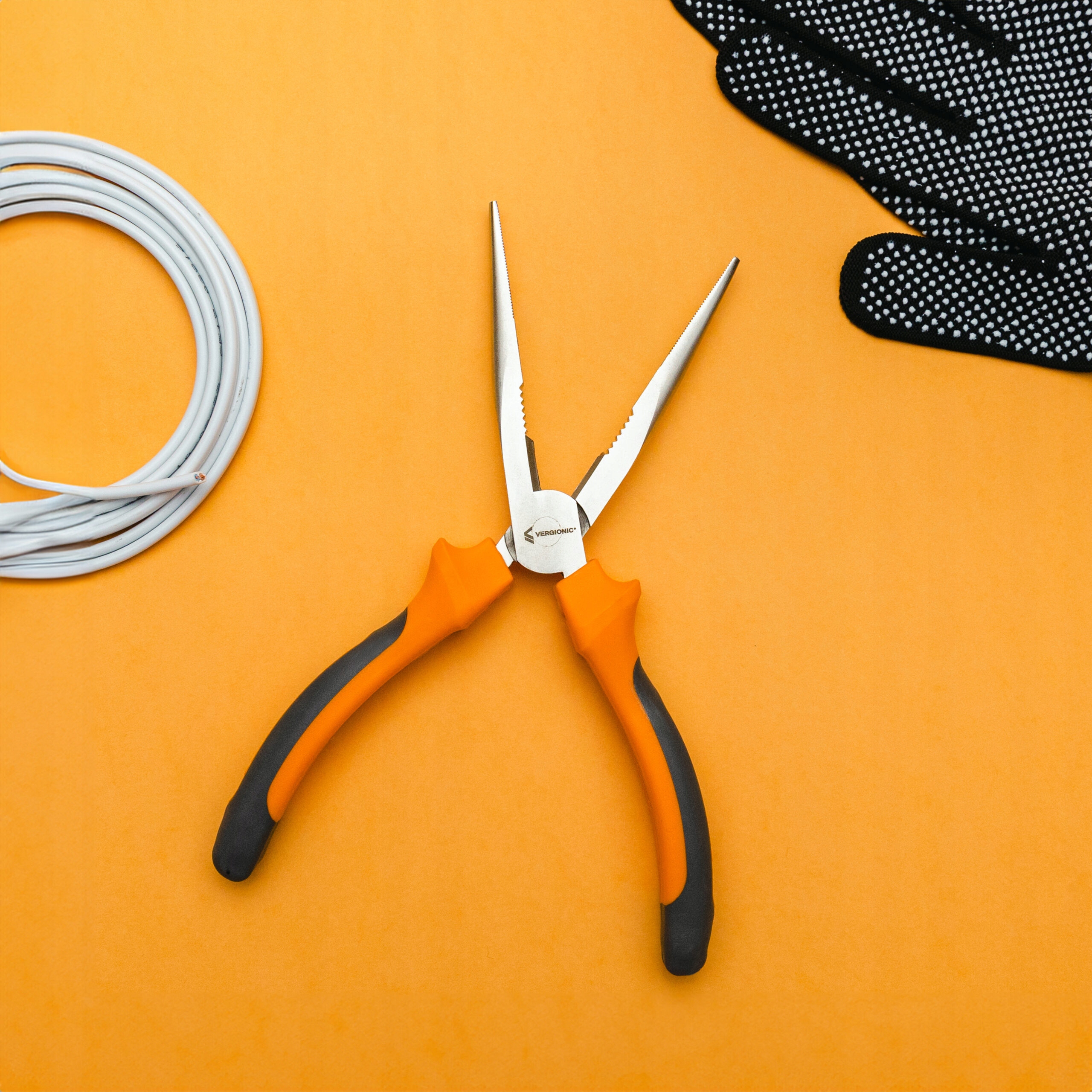 ⚙️Плоскогубці виготовлені з високоякісної хром-ванадієвої сталі і прослужать тривалий час без псування. Вони мають зубчасту поверхню захоплення, яка забезпечує міцне та безпечне захоплення навіть круглих предметів, а також бічну ріжучу поверхню. Завдяки ергономічній ручці, покритій міцною нековзкою гумою, плоскогубці добре лежать в руці і не ковзають під час роботи.