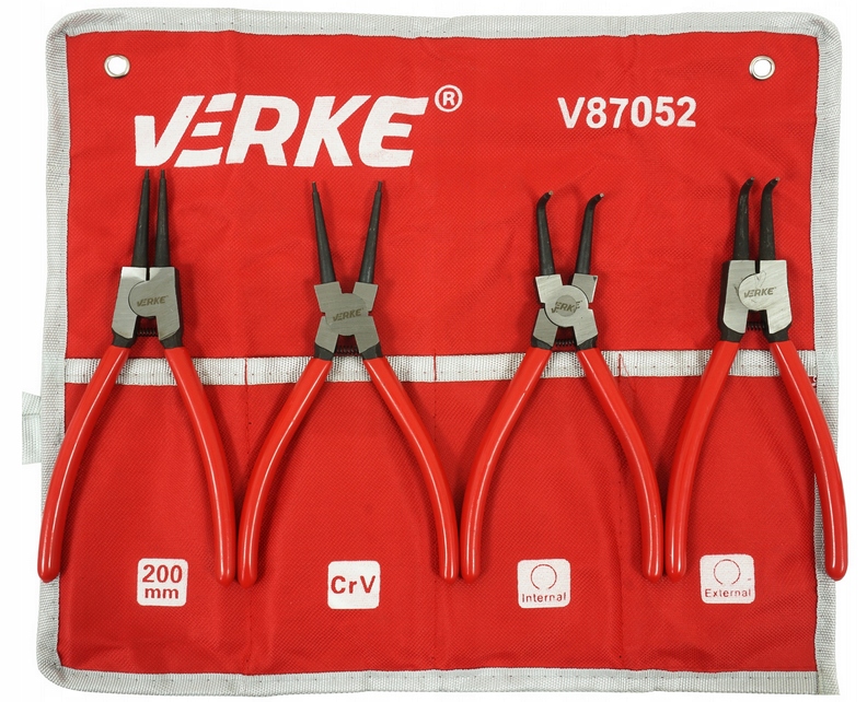Професійний набір плоскогубців 200 мм. Зовнішні та внутрішні стопорні кліщі призначені для встановлення та зняття стопорних кілець. Точно обточені тіпси. Плоскогубці зі сталі Cr-V, ручки покриті протиковзким матеріалом.