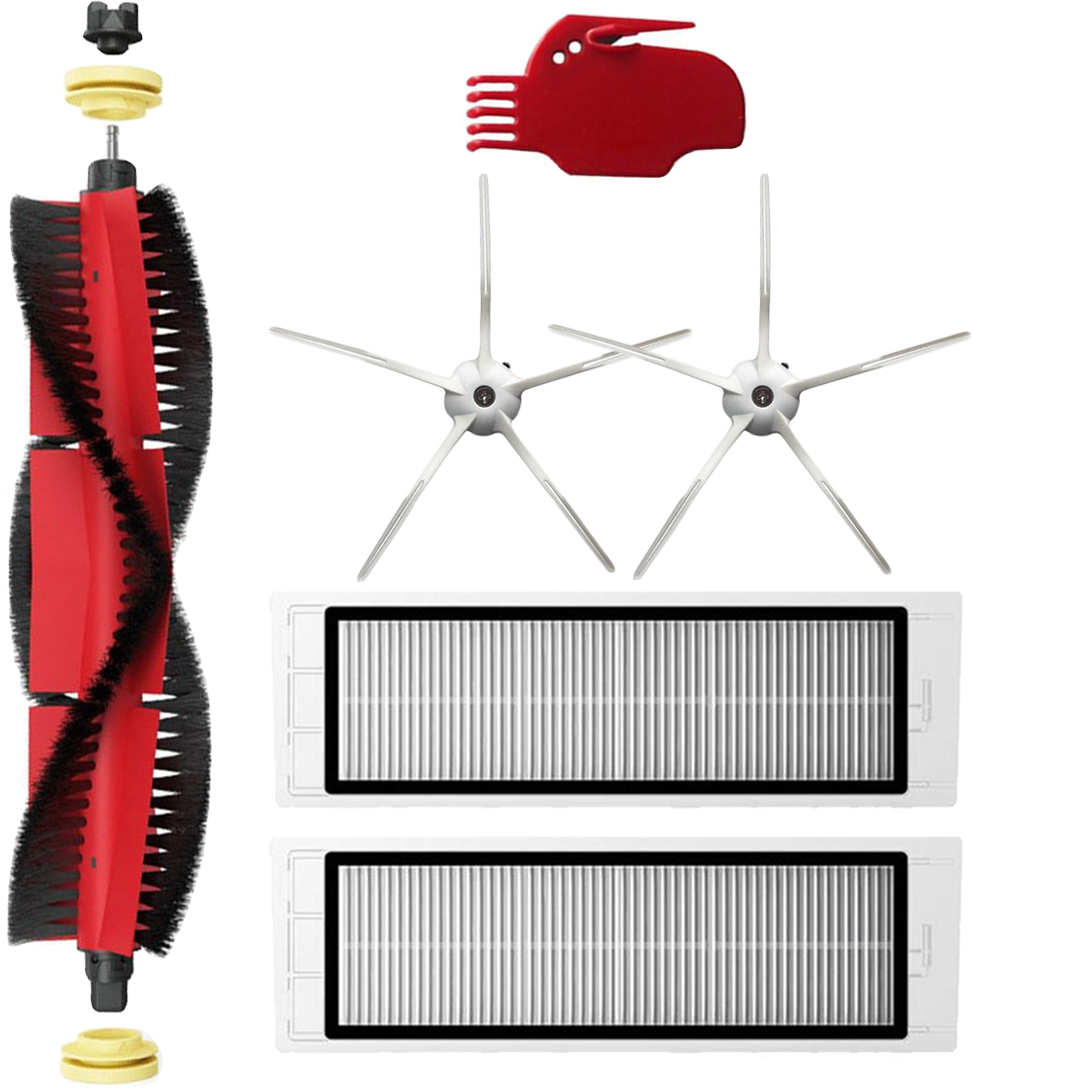 Набір змінних аксесуарів для робота-прибиральника з найякісніших матеріалів: основна щітка / турбощітка, бокова щітки, повітряні фільтри HEPA, інструмент для чищення.