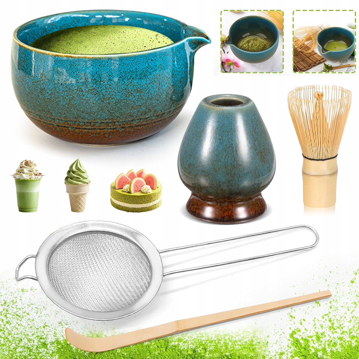 🍵🍵НАБІР АКСЕСУАРІВ ДЛЯ МАТЧА З СИТЕЧКОМ, ВІНОЧКОМ, ЛОЖКОЮ ТА ПІДСТАВКОЮ ДЛЯ СВИСТКА. ОСОБЛИВИЙ ПОДАРУНОК ДЛЯ СІМ'Ї ТА ДРУЗІВ.🍵🍵