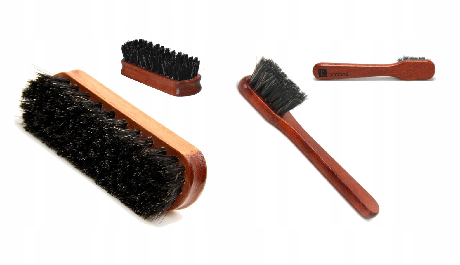 Пензлик виготовлений з кінського волосу. Ергономічна дерев'яна ручка добре лежить в руці, коли намазуєте лаком взуття та шкіряні вироби. Торгова марка Coccine поєднує в собі функціональність і доступну ціну. Щітка для взуття є одним із продуктів, які MUST HAVE у кожному домі.