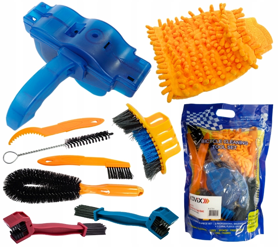 Набір інструментів для чищення велосипедів розроблено з урахуванням щоденної потреби чистити мотоцикли та велосипеди. Усі інструменти допоможуть вам ефективно очистити й усунути весь бруд у кожному куточку автомобіля. Поєднання набору інструментів із, наприклад, спеціальними засобами для чищення, дозволить вам знову полюбити свій велосипед.