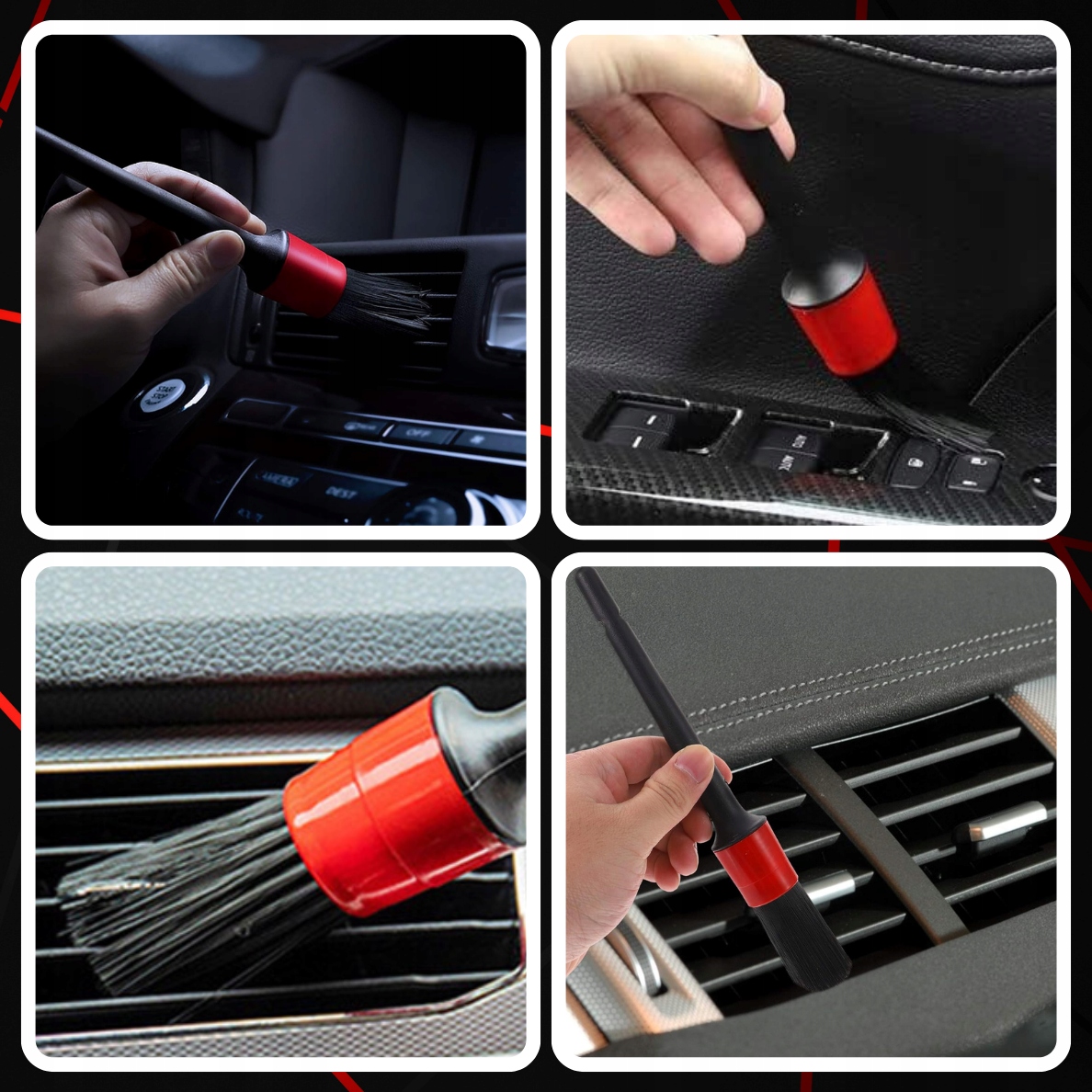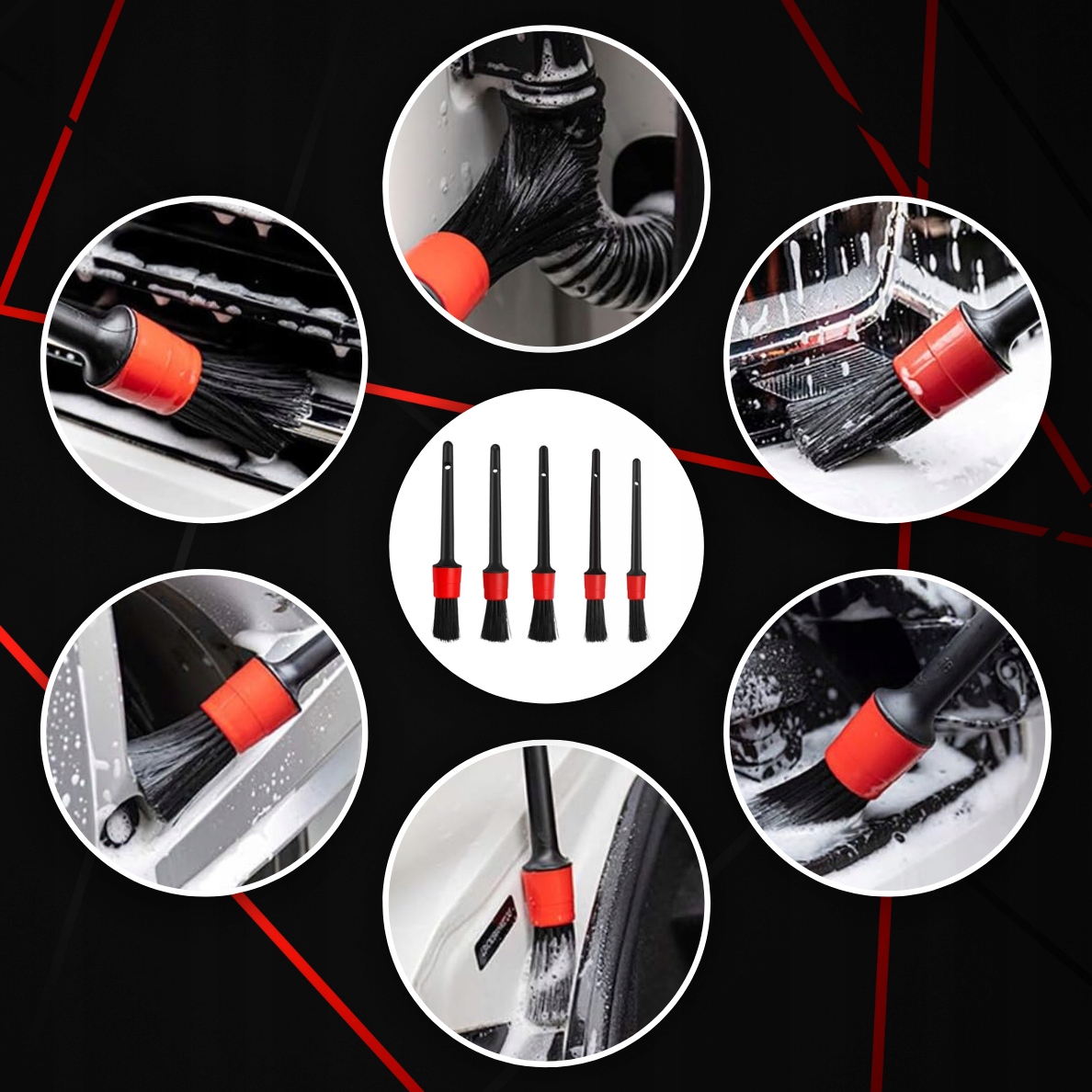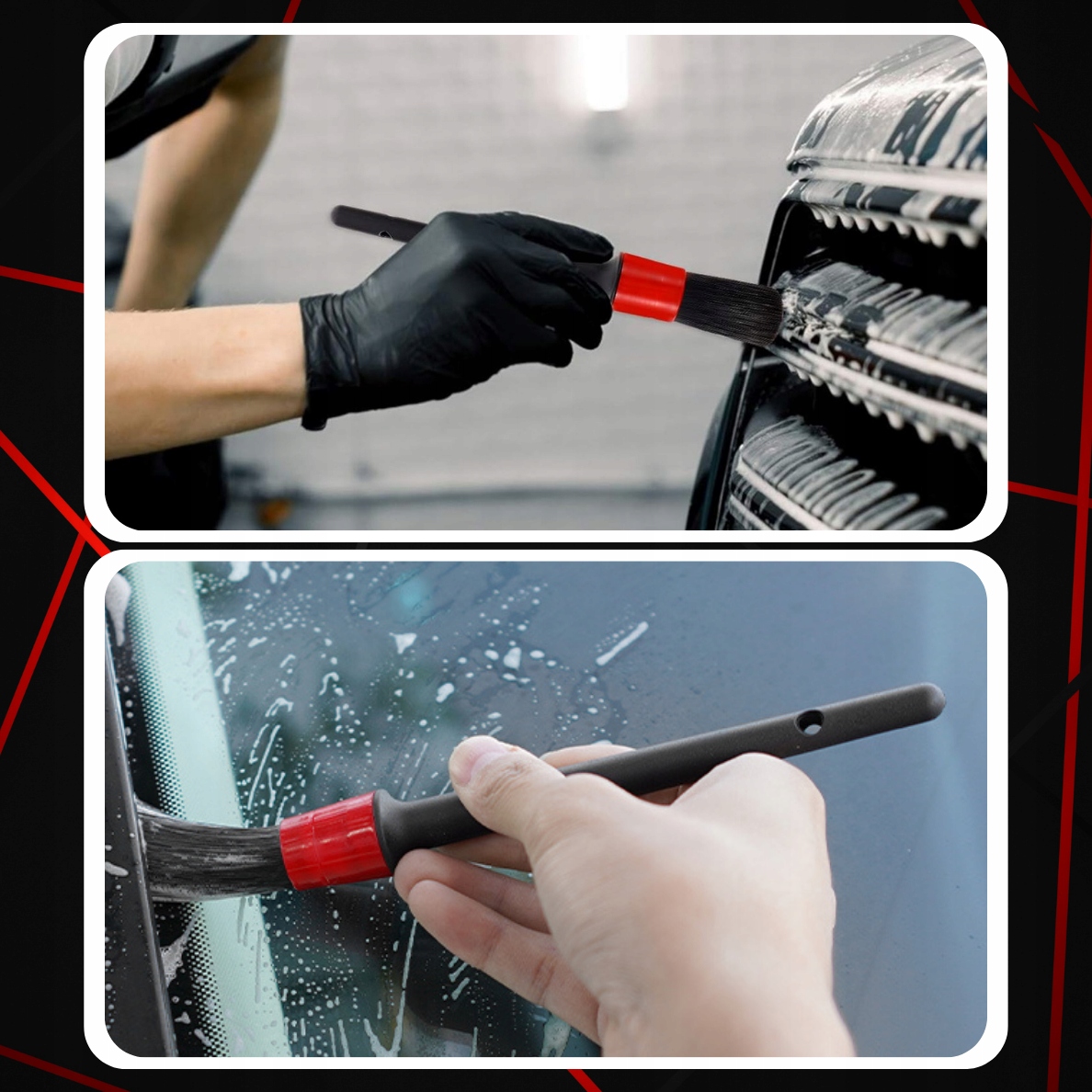 ✅ Крім того, щітки ідеально підходять для чищення оббивки автомобіля . Незалежно від того, шкіряна чи тканинна оббивка у вас, щітки м’яко видаляють забруднення, не пошкоджуючи ніжну поверхню. Вони також незамінні в розподілі миючих засобів, що дозволяє рівномірно та ефективно покрити всі елементи.