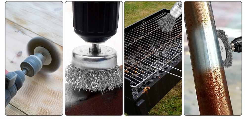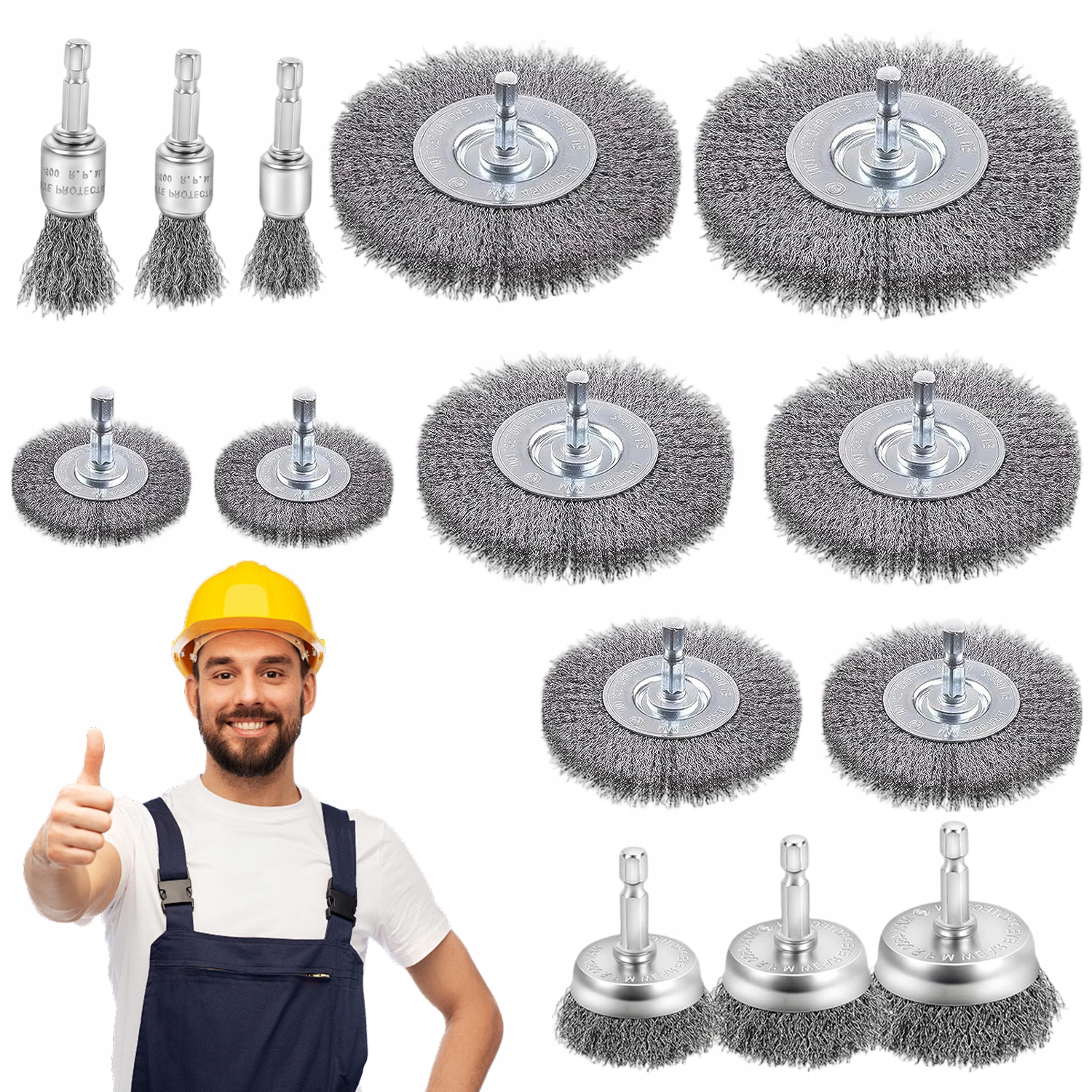 ✔️ У набір входять 3 різні типи дротяних щіток: 8 Т-подібних плоских щіток, 3 чашеподібні щітки та 3 щітки у формі пера. Під час використання дротяних щіток одягайте захисну маску, щоб забезпечити вашу безпеку.