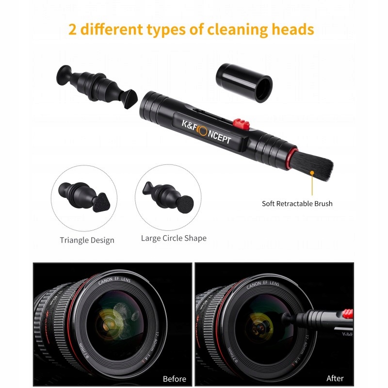 Двостороння ручка та пензлик – можна використовувати для обережного та ретельного видалення пилу та бруду, що потрапили на краї лінзи або в невеликі щілини.