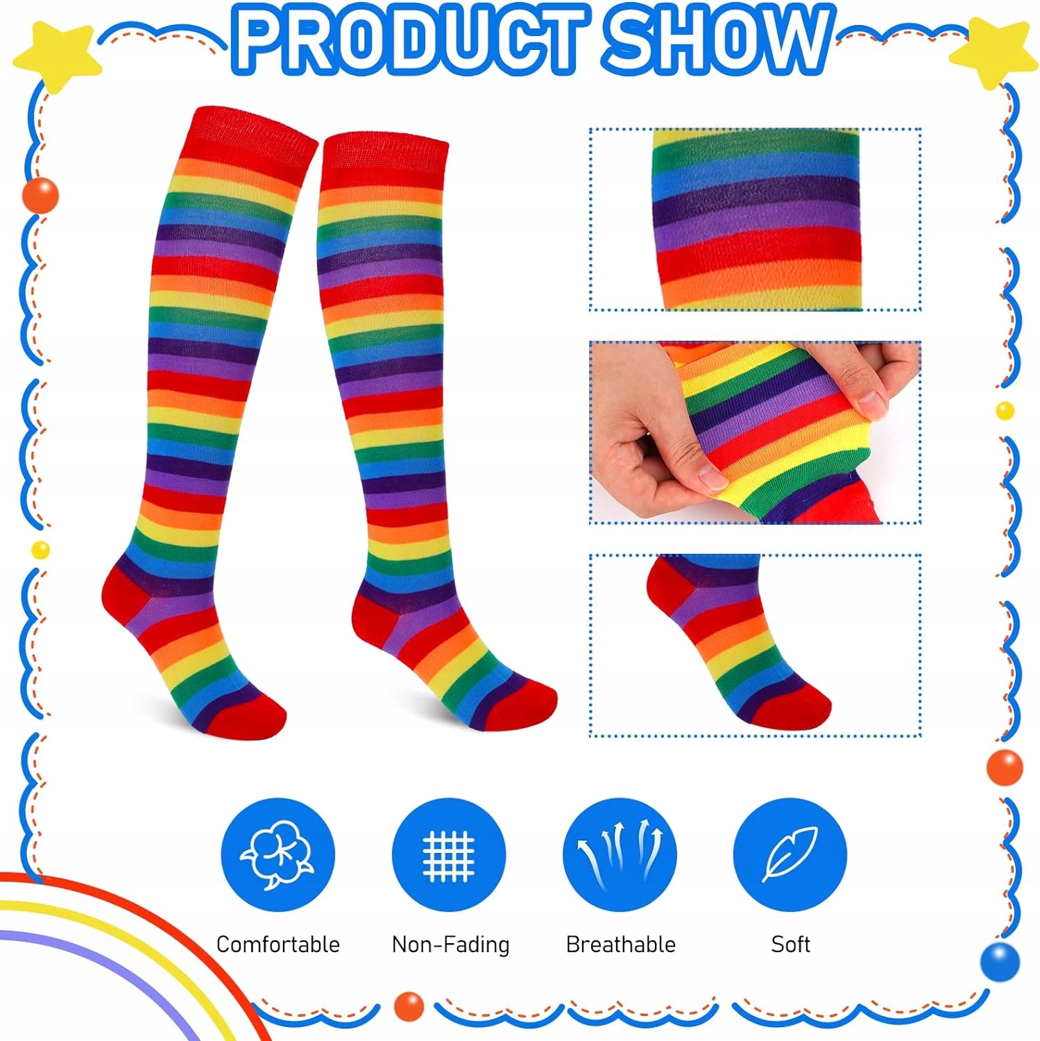 - Різноманітне використання: набір рукавичок до колін із високими шкарпетками Rainbow Thigh Socks м’який і еластичний і необхідний для збереження тепла в холодні дні. Яскраві кольори та стилі ідеально підходять для костюмів на Хеллоуїн, костюмів для косплею, вечірок чи інших заходів.