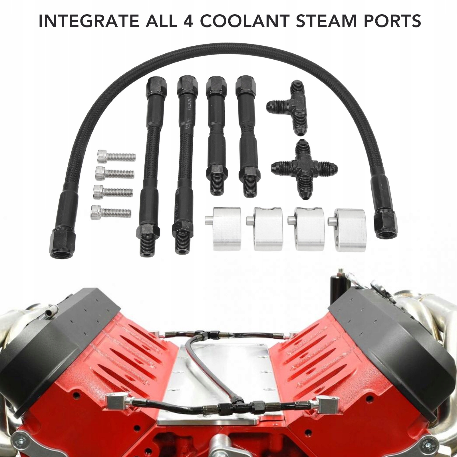 1. Встановлення: комплект розподільника охолоджуючої рідини підходить для двигунів серії LS і сумісний з більшістю повітрозабірників. Низькопрофільні повітрозабірники, можливо, потребують модифікації, щоб відповідати їм.