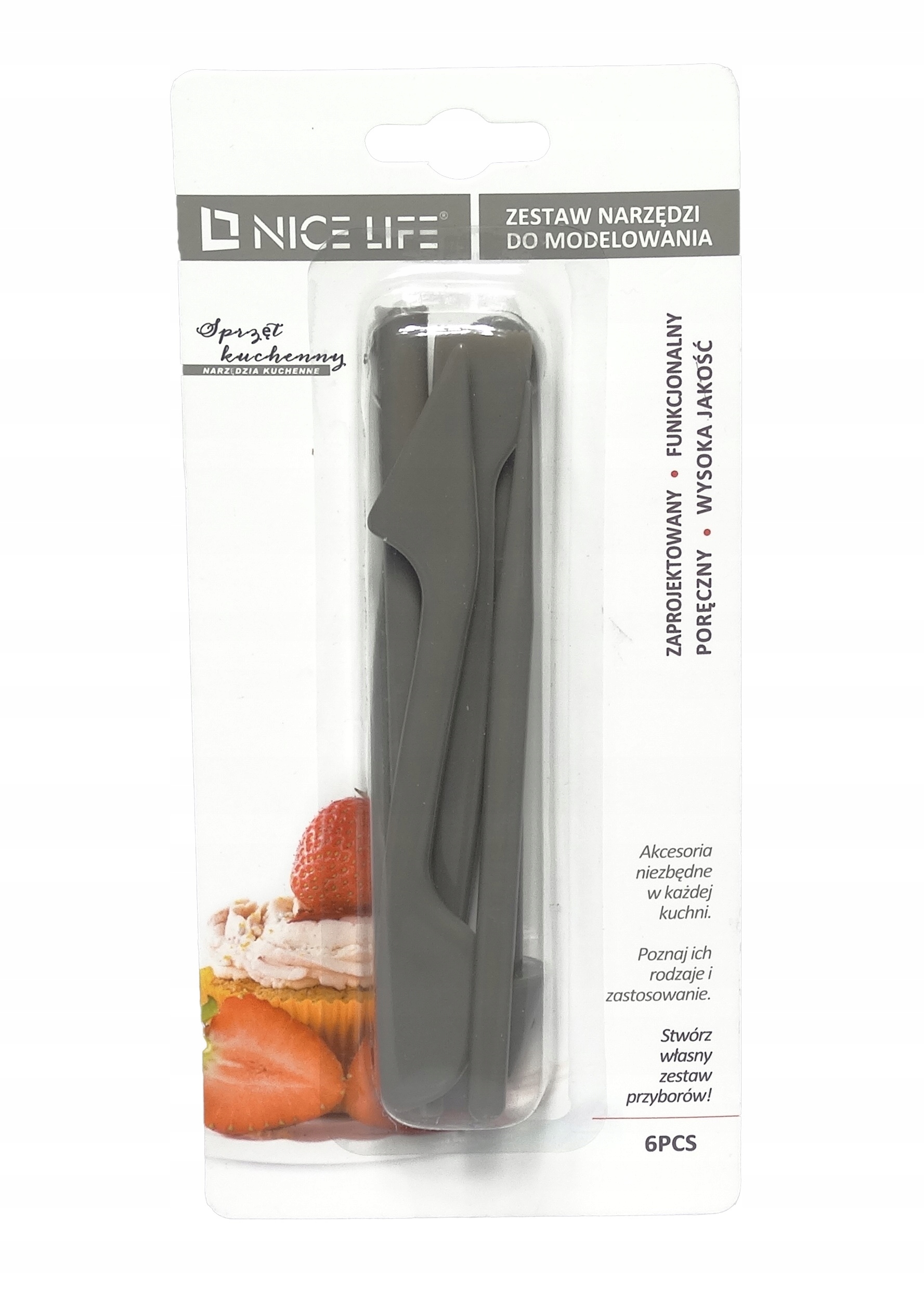 - Набір із 6 предметів для моделювання, вирізання, формування, розміщення тонких прикрас із цукрової пасти, марципану тощо.