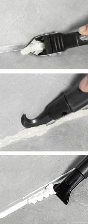Універсальні шпателі багаторазового використання, оснащені практичним набором елементів для нанесення, замазування та видалення старих швів, силікону та затирки . Призначені для фінішних робіт при укладанні плитки сухим і мокрий.