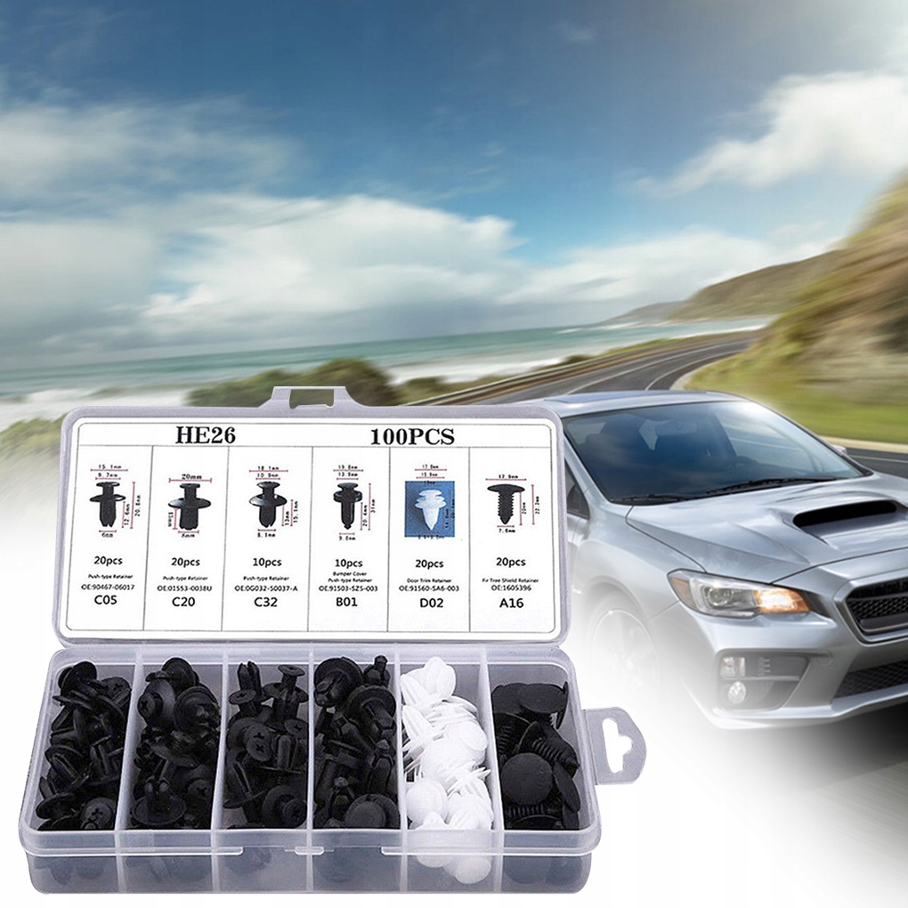 Автомобільні кліпси ретельно упаковані в практичну коробку з відділеннями, яка допоможе підтримувати порядок у вашому гаражі чи майстерні. Набір містить вражаючу кількість до 100 монтажних затискачів.