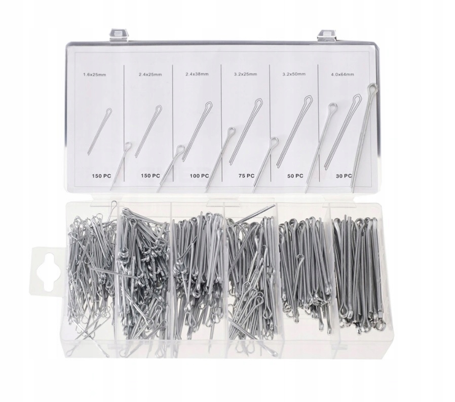 Шплинти використовуються для закріплення гвинтових з'єднань, осей, шпильок та інших рухомих елементів, забезпечуючи довговічність і безпеку монтажу. Все це розміщено в практичній коробці, що замикається, із відділеннями, що полегшує організацію та швидкий доступ до відповідних розмірів.
