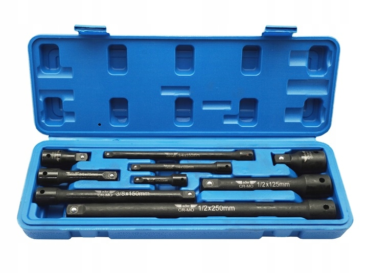Набір подовжувачів, придатних для розеток 1/2", 1/4", 3/8" і тріскачок.