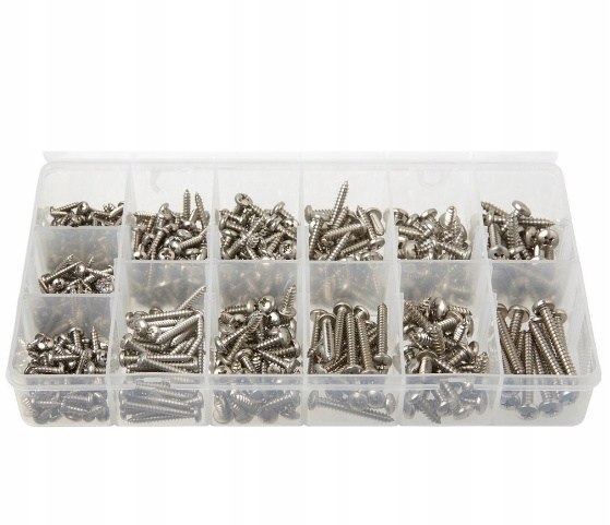 Набір листового металу Hardhead містить 515 листового металу в 13 розмірах. Гвинти виготовлені з нержавіючої сталі (A2) відповідно до DIN7981 і оснащені наконечником Phillips.