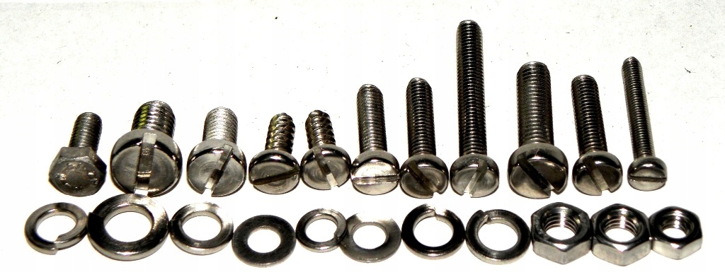 Набір складається з елементів з хромонікелевої нержавіючої сталі класу А2 70. У набір входять болти, гвинти, гайки і шайби, розділені на 10 окремо упакованих груп, що дозволяє безпроблемно встановлювати окремі компоненти мопеда. Додатково в групу КЕРМО додані два гвинти з тонкої сталі М10 з оцинкованим покриттям класу 10.9 В групі КОЛЕСА в комплект входять гвинти, гайки і шайби для кріплення зірочки заднього колеса. Додані сталеві гвинти M7 оцинковані до класу 8.8