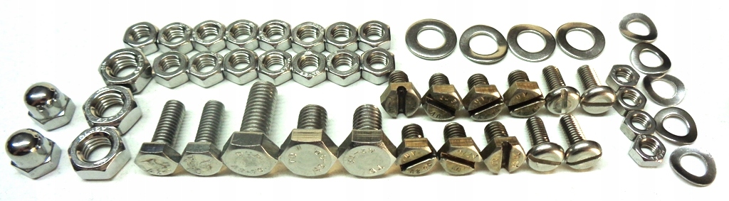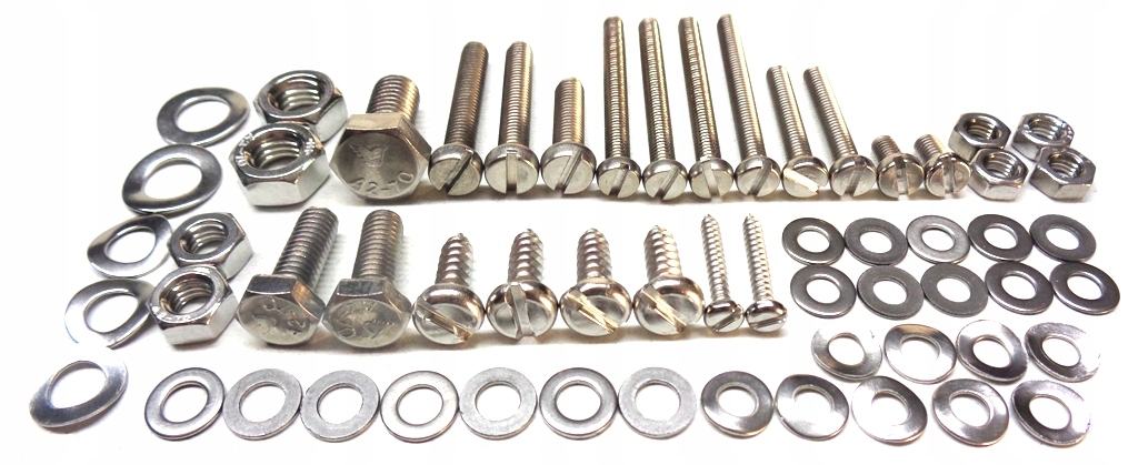 Набір складається з елементів з хромонікелевої нержавіючої сталі класу А2. У набір входять болти, гвинти, гайки та шайби, розділені на 15 окремо упакованих груп, що дозволяє безпроблемно збирати окремі компоненти мотоцикла.